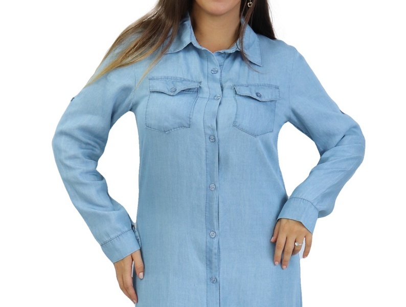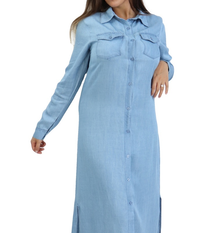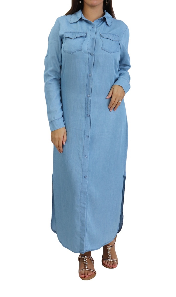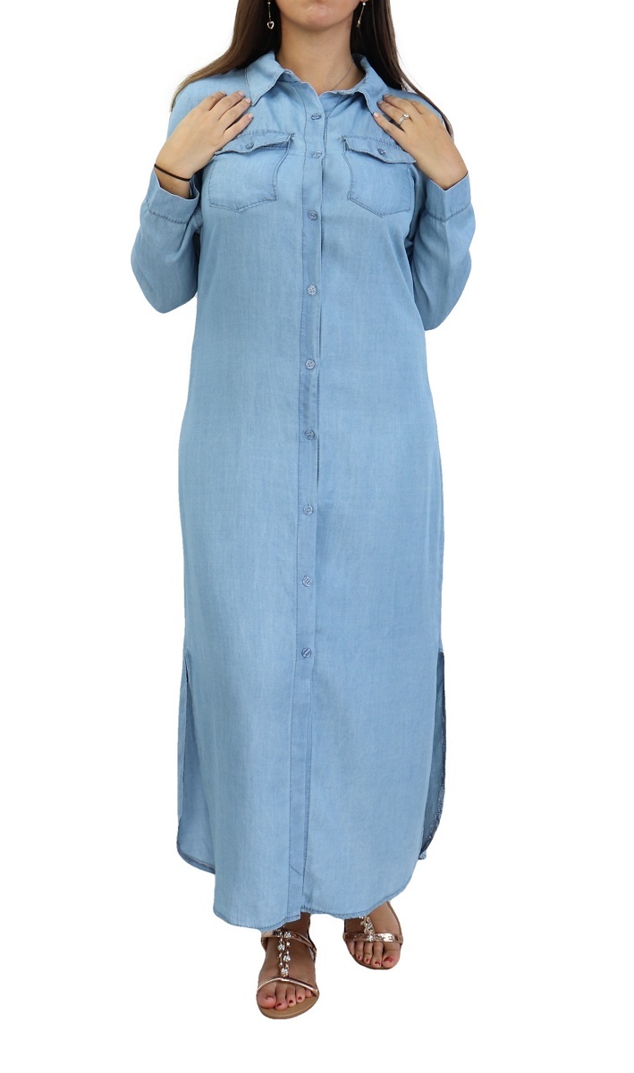 Robe chemise longue pour femme de marque - Couleur bleu jean clair Vetement & Accessoire