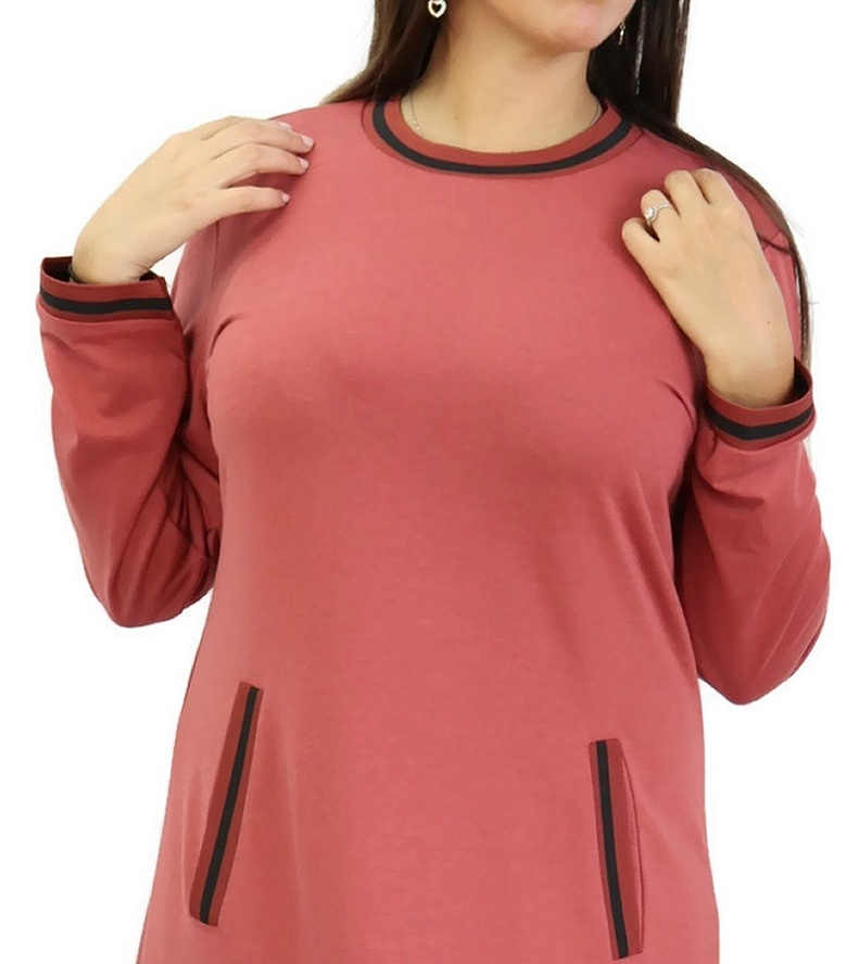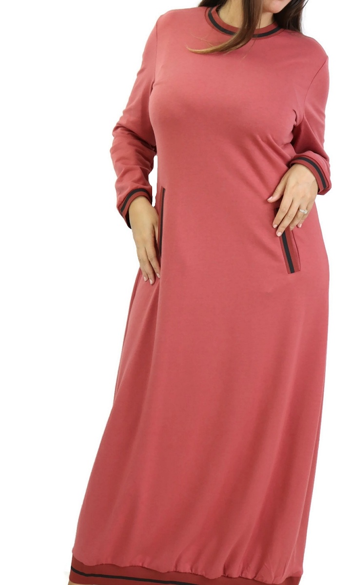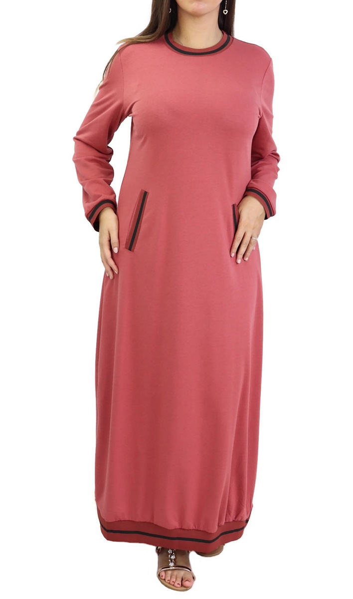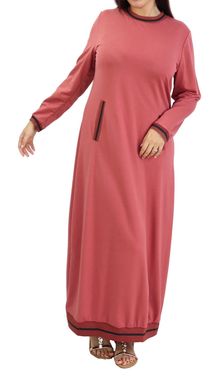Robe longue, col rond, 2 poches latérales, bordures côtelées. Changez de style avec ce modèle décontracté de matière douce pour un confort ultime.