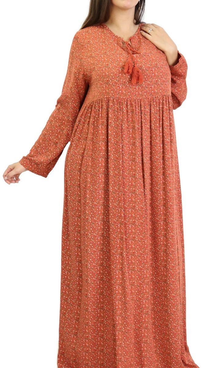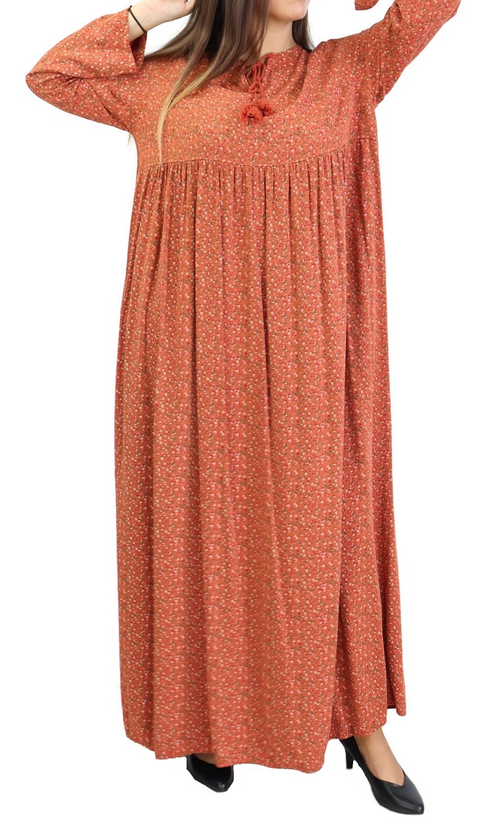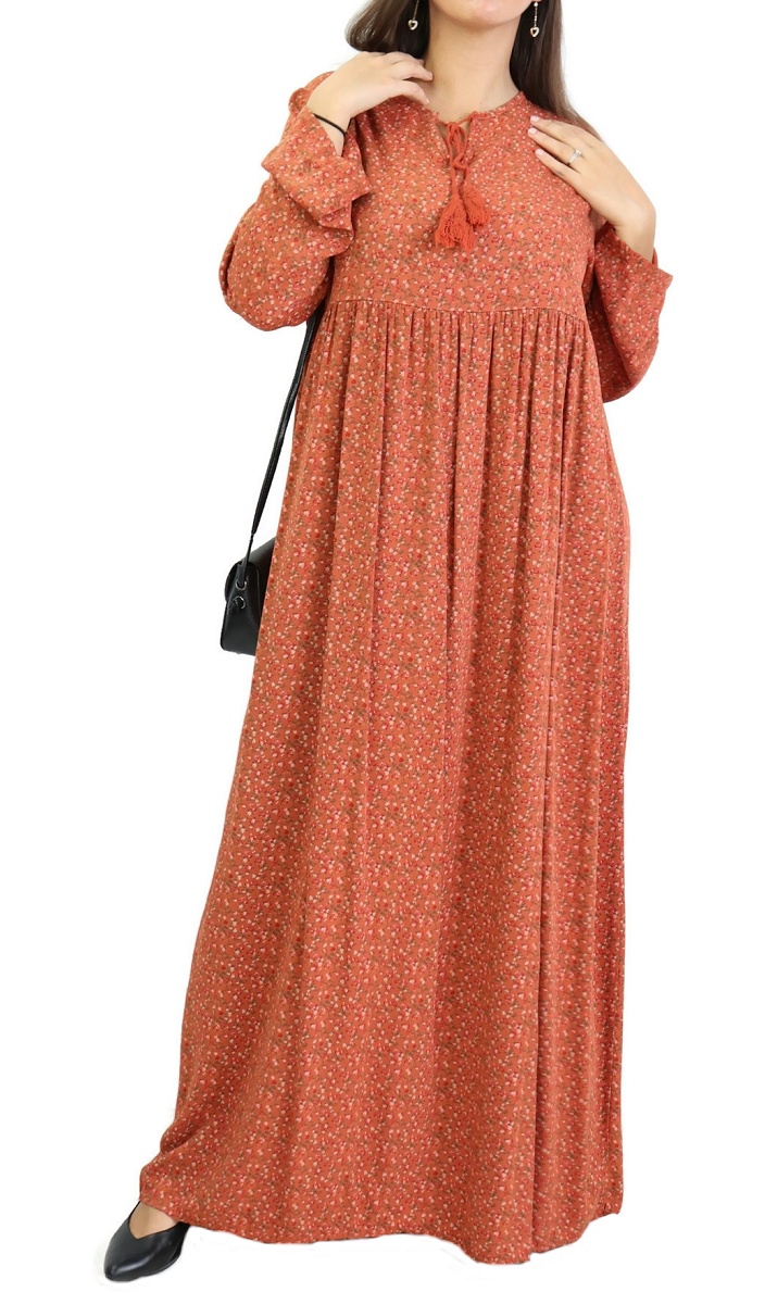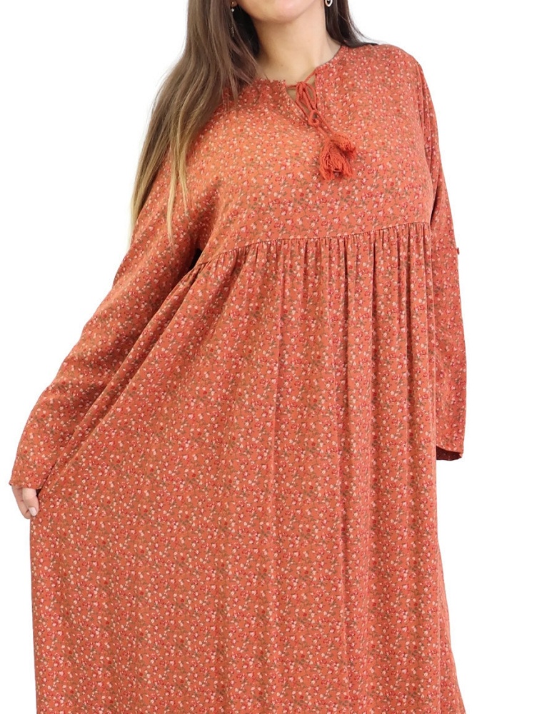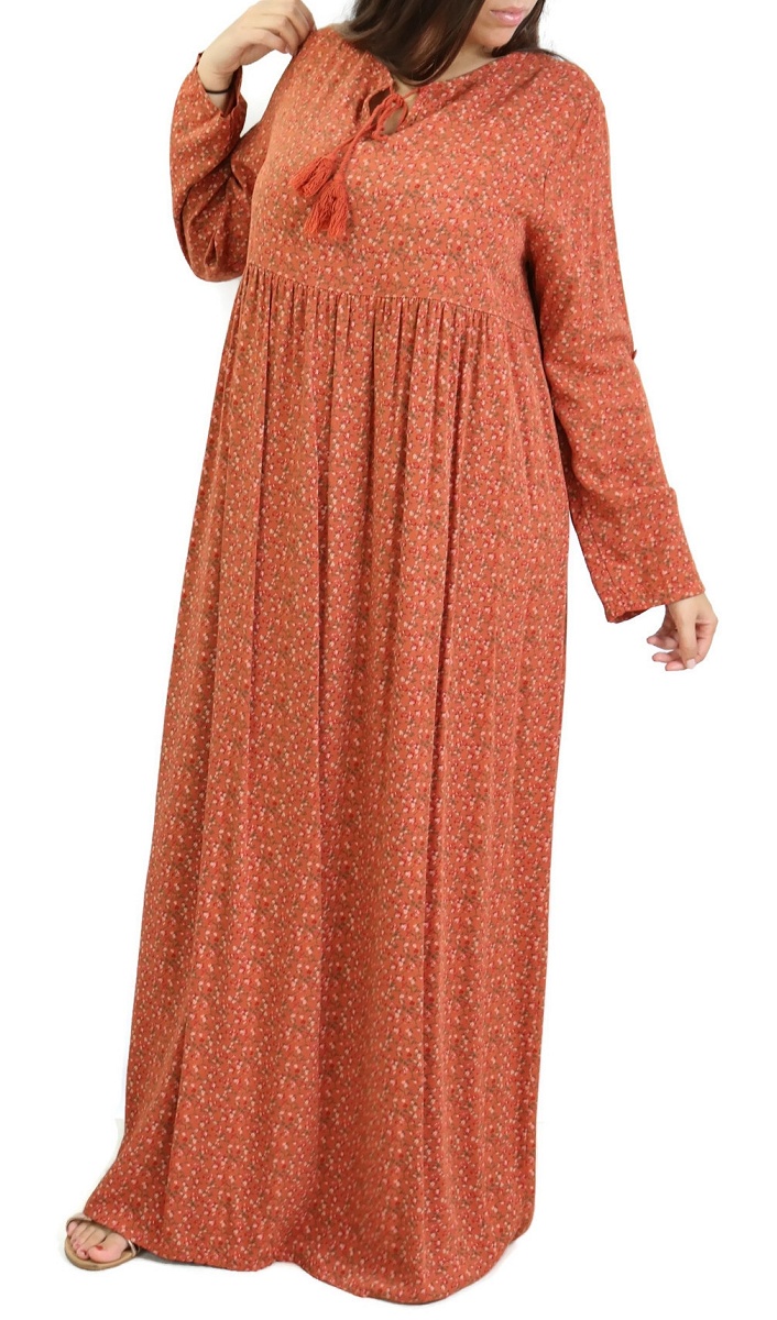 Robe longue motif fleurs ample pour femme (Vêtements hijab mastour) - Couleur tabac - REF. 36589 (29.90 €)
