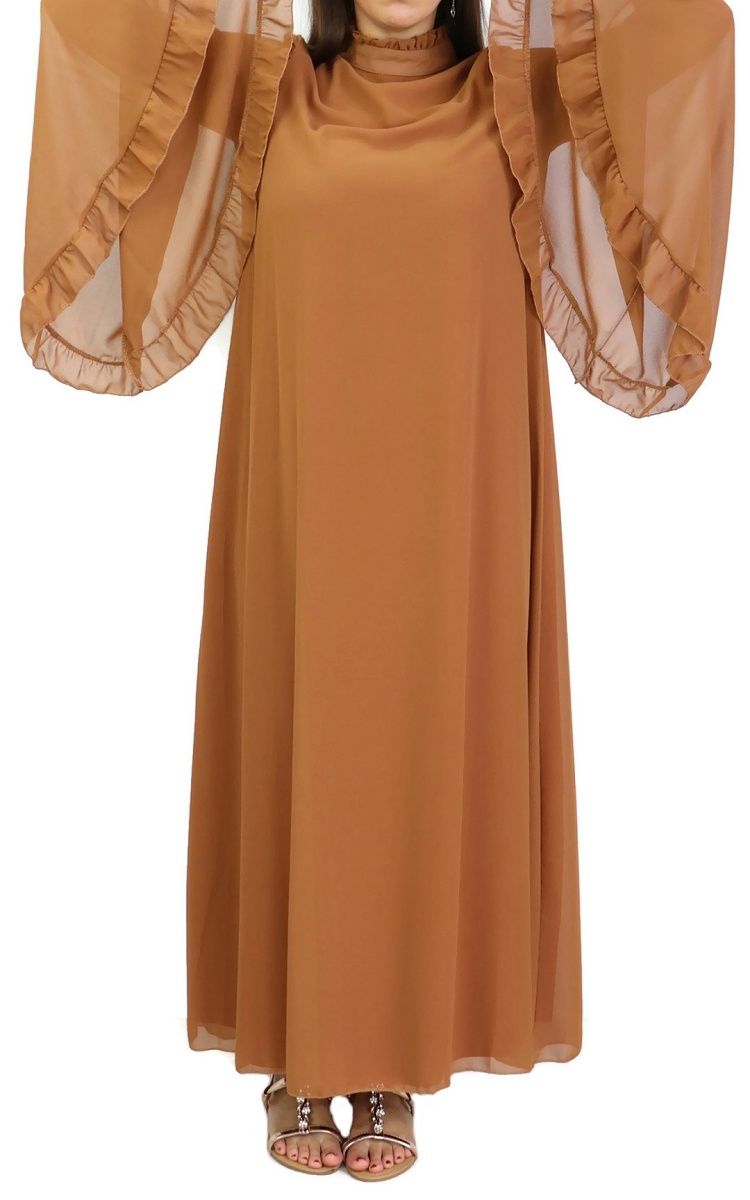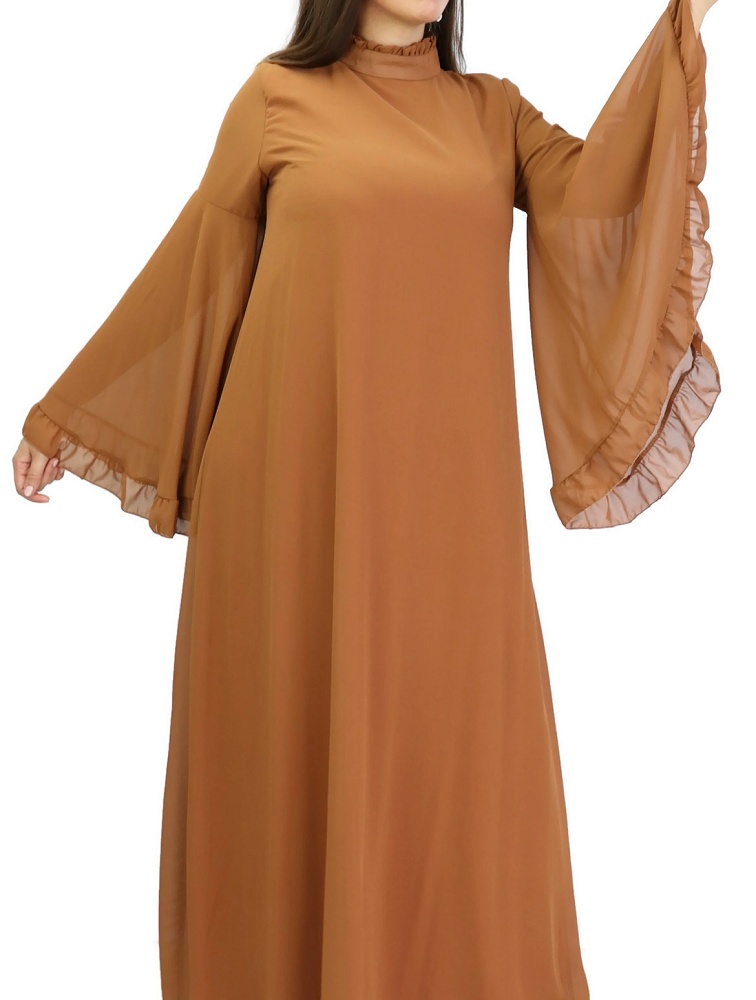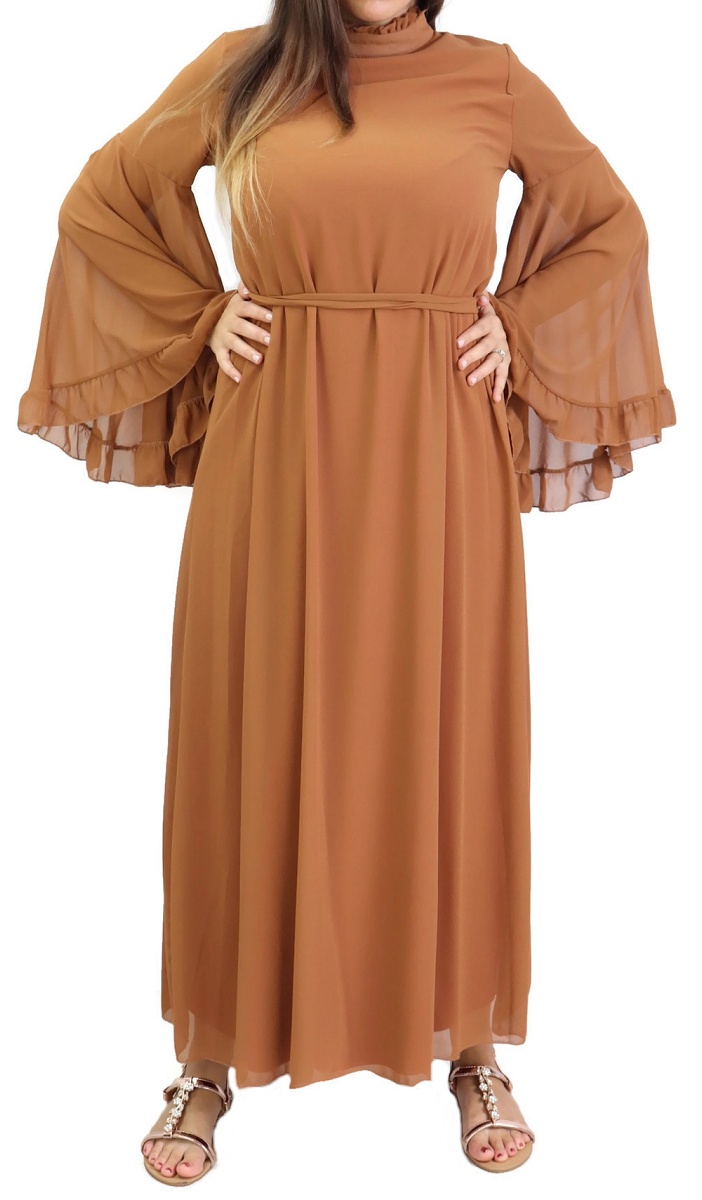 Le mannequin de la robe de couleur Caramel mesure 1m67.