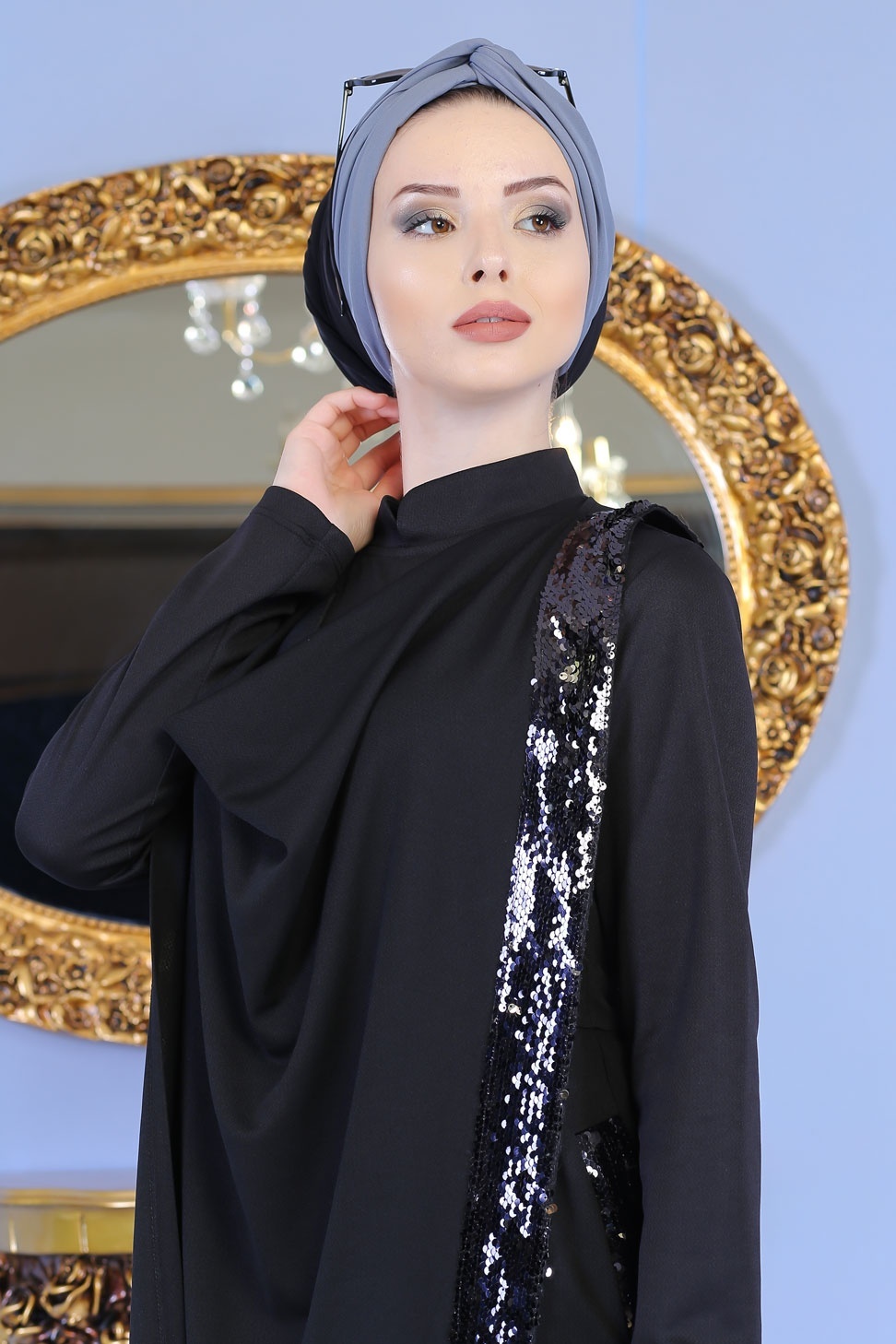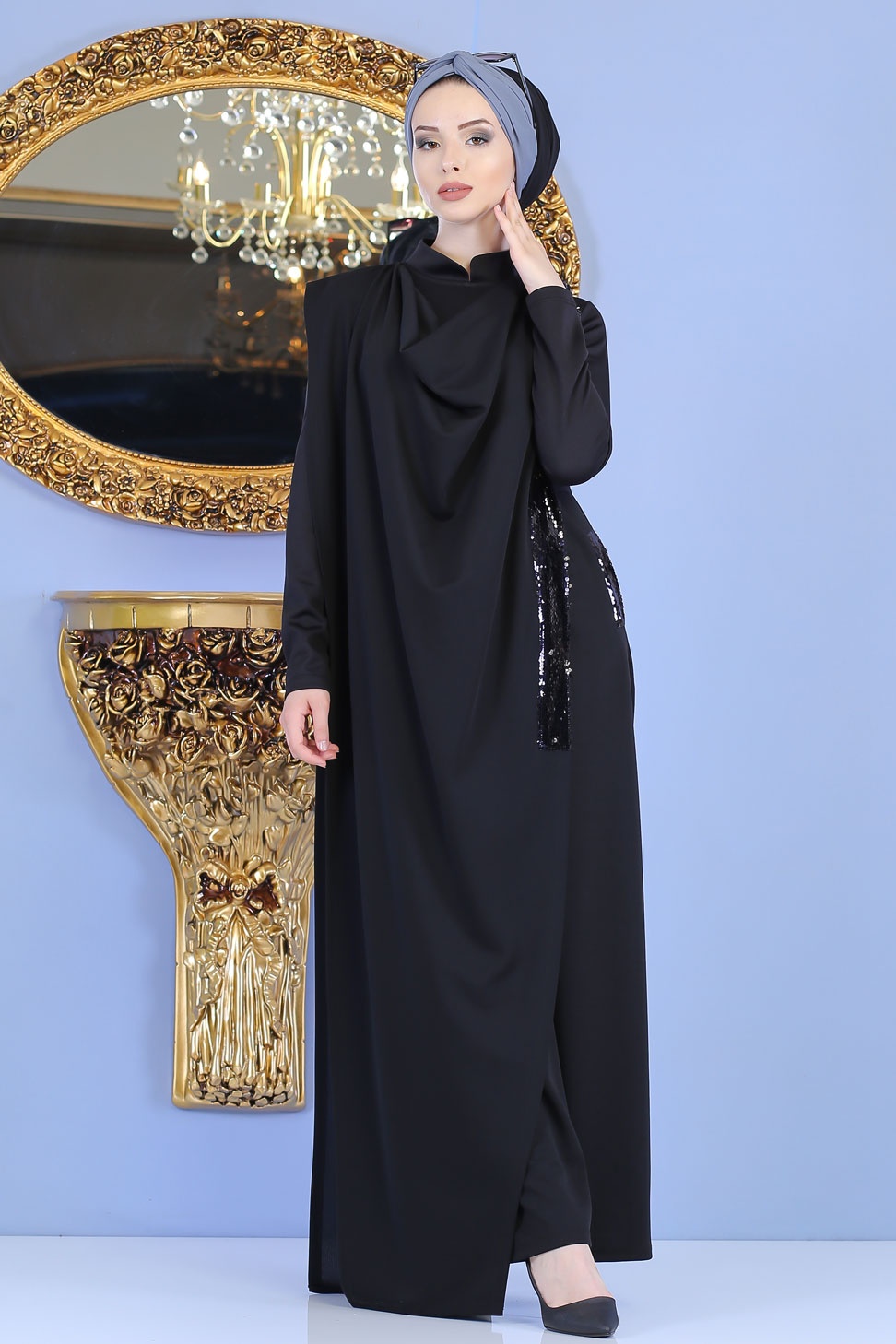 La combinaison à l’avantage d’être chic, féminine et confortable, col mao, fermeture zippée dos. Notez le décor de strass sur la cape ainsi sur les poches qui apporte une touche de fantaisie.