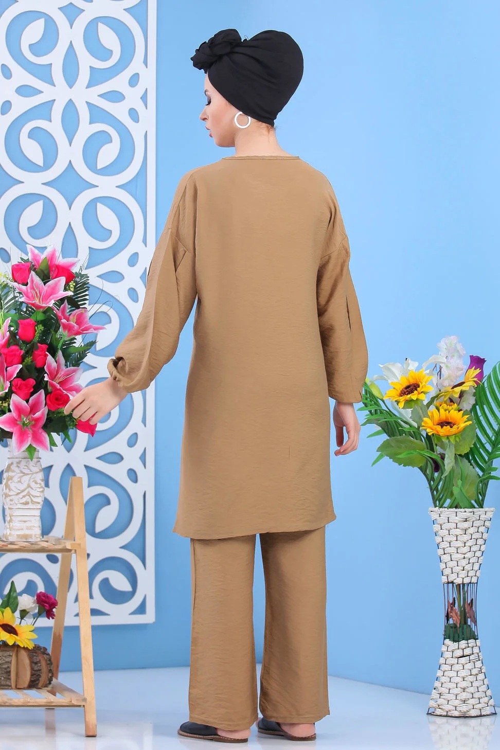 Ensemble casual deux pieces chic et decontracte pour femme - Couleur caramel