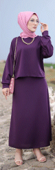 Ensemble chic deux pièces haut et jupe (Vetement femme voilée) - Couleur prune - REF. 32838 (29.90 €) - En Promotion à 24.90 €