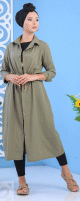 Tunique chemise longue boutonnée tout au long avec cordon pour femme - Couleur kaki - REF. 33569 (25.00 €)