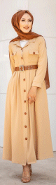 Robe longue casual boutonnée avec sa ceinture pour femme (Vetement hijab chic) - Couleur Beige - REF. 33927 (35.00 €)