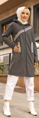 Veste longue à capuche type Sportswear pour femme voilée - Couleur anthracite - REF. 34694 (25.00 €) - En Promotion à 19.00 €