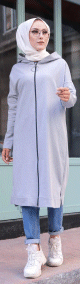 Cardigan Gilet long zippé style hijab sportswear col à capuche pour femme voilée - Couleur gris clair - REF. 35762 (24.90 €)