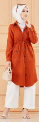 Veste-tunique satinée à ceinture pour femme (Mode musulmane en ligne pas cher) - Couleur rouille - REF. 32260 (20.00 €) - En Promotion à 16.90 €