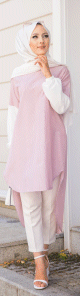 Tunique à capuche tricolore (Vêtement décontracté moderne pour femme voilée) - Couleur noir, blanc et mauve - REF. 38284 (24.00 €)