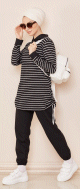 Ensemble décontracté tunique à rayures et son pantalon assorti - Couleur noir - REF. 37155 (28.00 €)