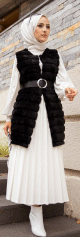 Gilet à fourrure avec ceinture pour femme (Vêtement Saison hivernale) - Couleur noir - REF. 38273 (25.00 €)