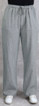 Pantalon femme décontracté en lin blanc à fines rayures kaki - REF. 32052 (18.00 €)