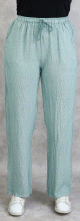 Pantalon femme décontracté en lin blanc à fines rayures vert amande - REF. 32054 (18.00 €)
