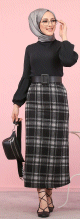 Ensemble 2 pièces chic pour femme (Tenue Modest Fashion) - Haut et jupe noir et gris à carreaux - REF. 32201 (29.00 €)
