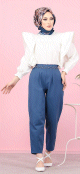Ensemble Casual Pantalon très large et Blouse avec collier assorti (Vetement Hijab Turque) - Couleur bleu pétrole - REF. 32869 (19.90 €)