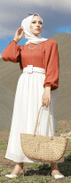 Jupe longue avec plissures au niveau de la ceinture - Couleur brique - REF. 29744 (18.00 €)