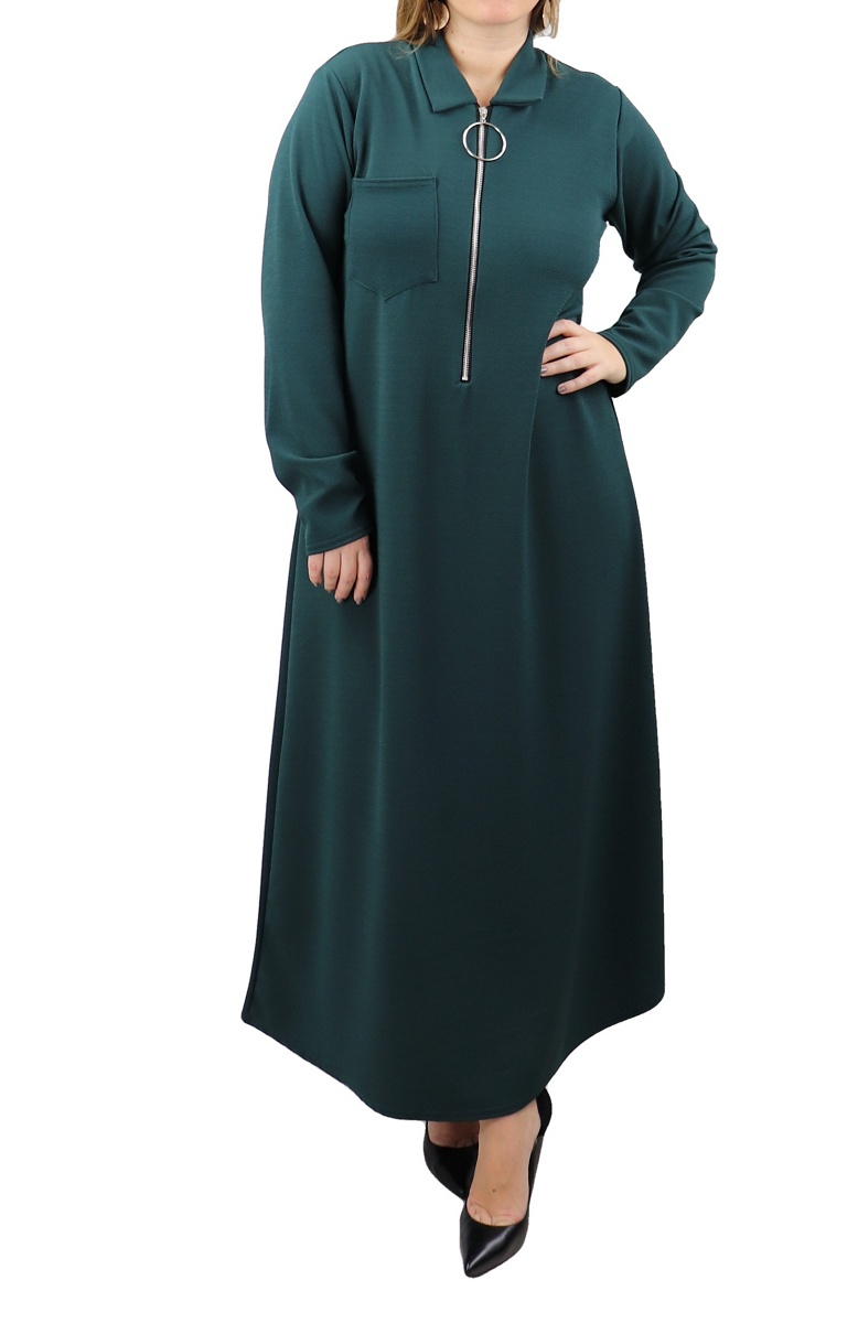 Robe longue fermeture zip avec ceinture pour femme (Taille standard s'adapte aux grandes tailles) - Vert foncé Vetement & Accessoire