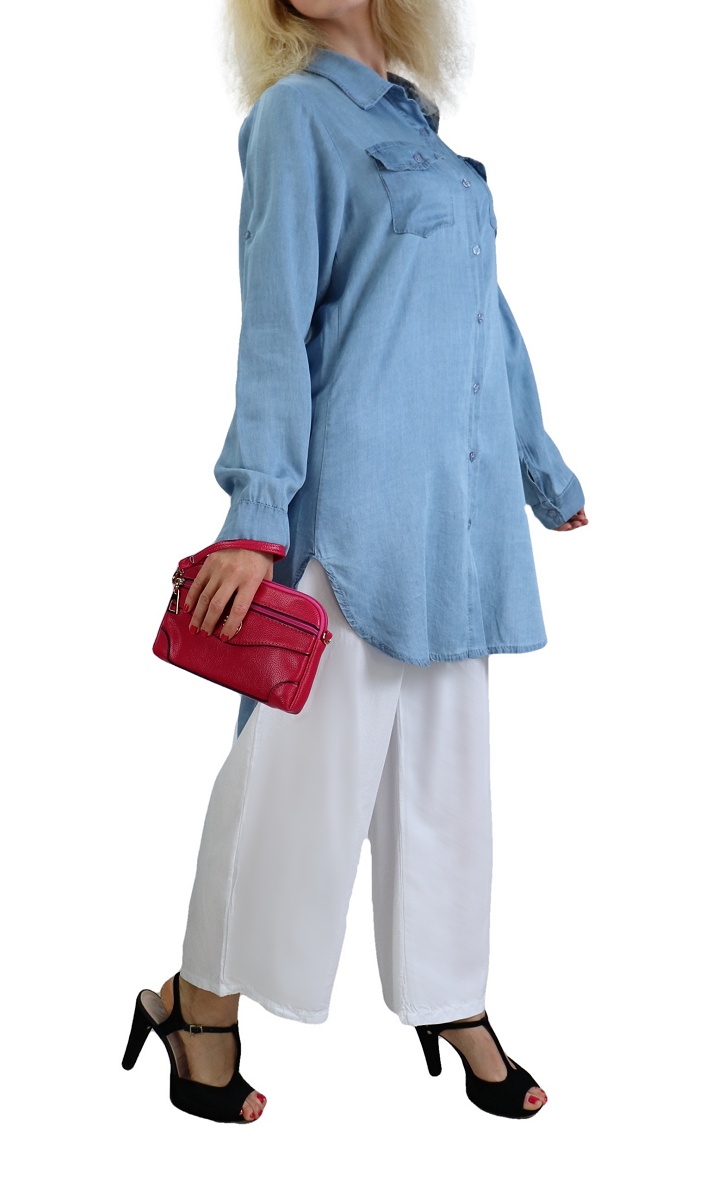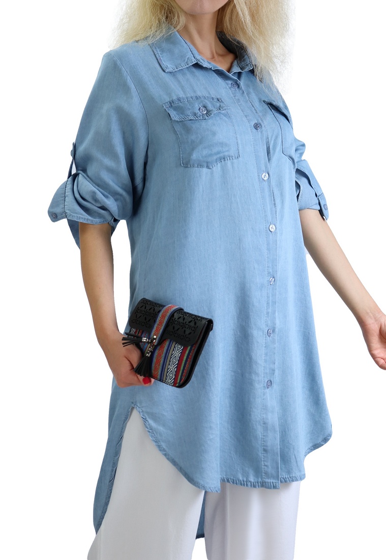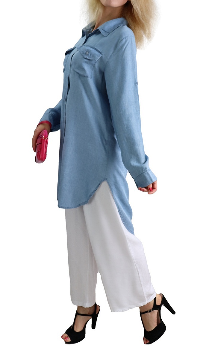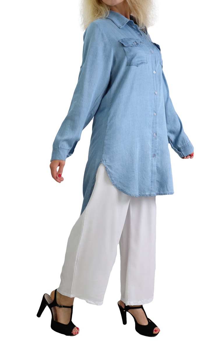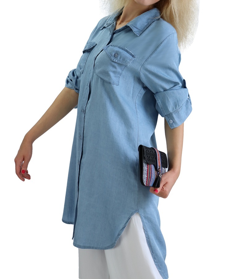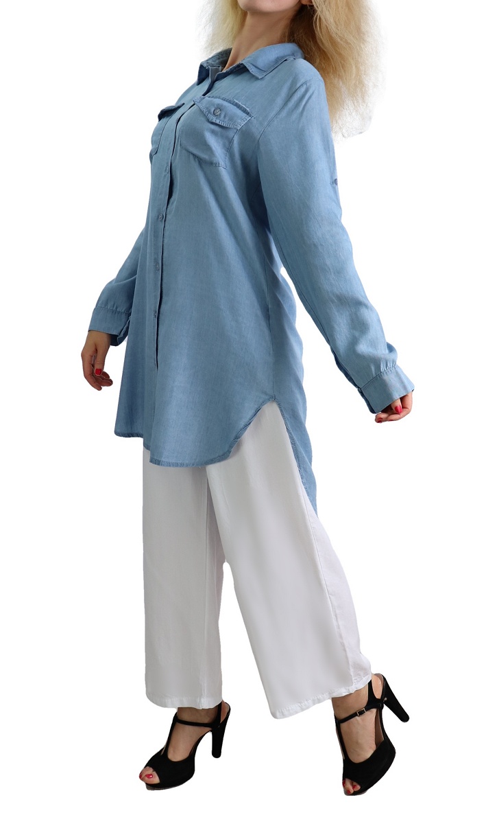 Chemise avec poches latérales pour femme - Couleur jean clair Vetement & Accessoire