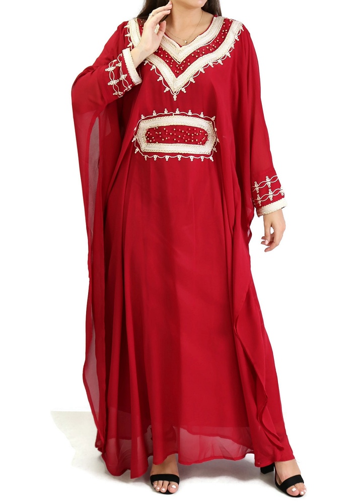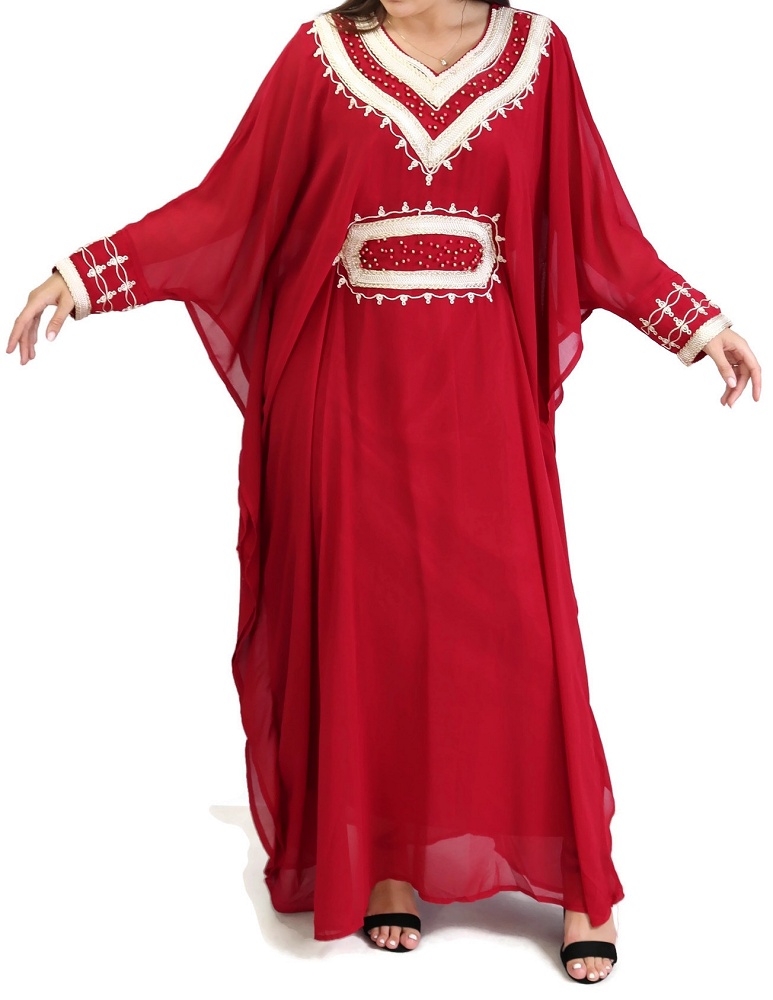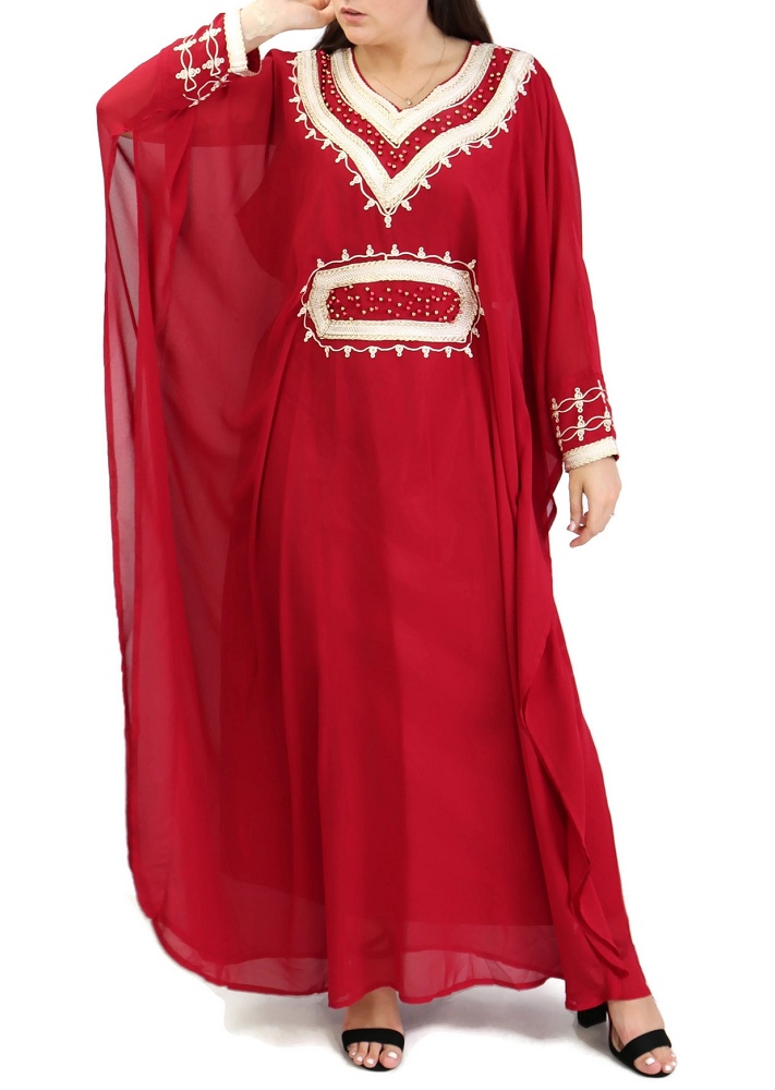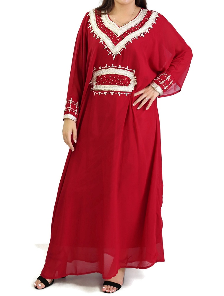 Robe orientale manches longues avec broderies - Couleur Rouge Vetement & Accessoire