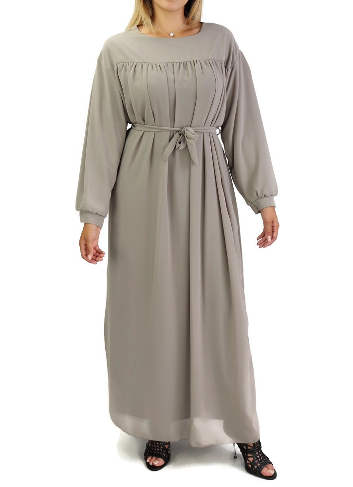 Robe longue et ample entièrement doublée avec ceinture - Couleur Taupe Vetement & Accessoire
