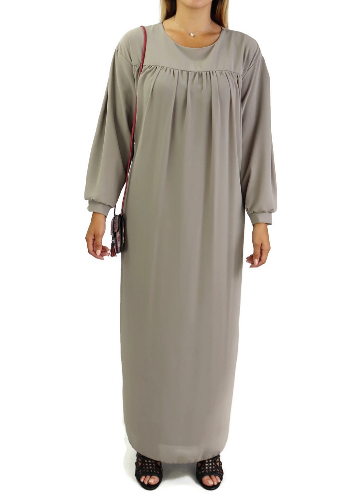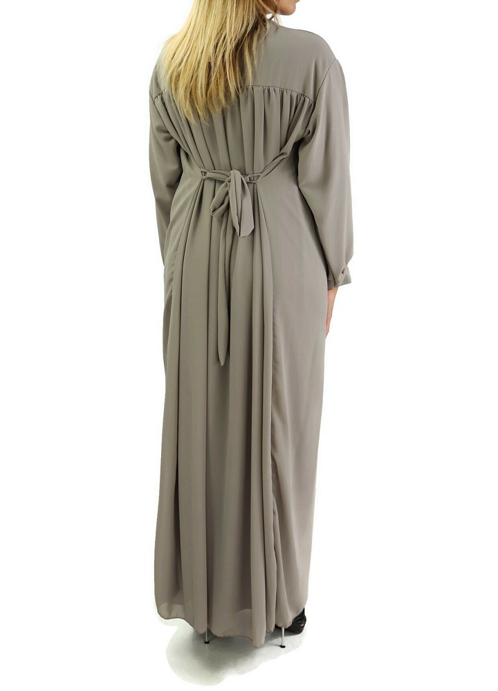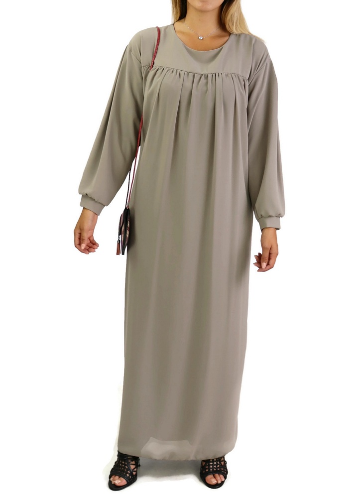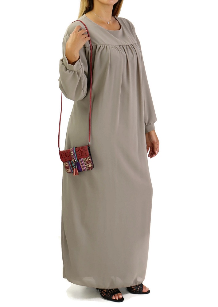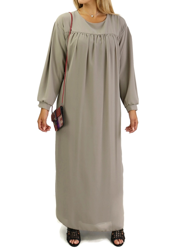 Robe longue et ample entierement doublee avec ceinture - Couleur Taupe