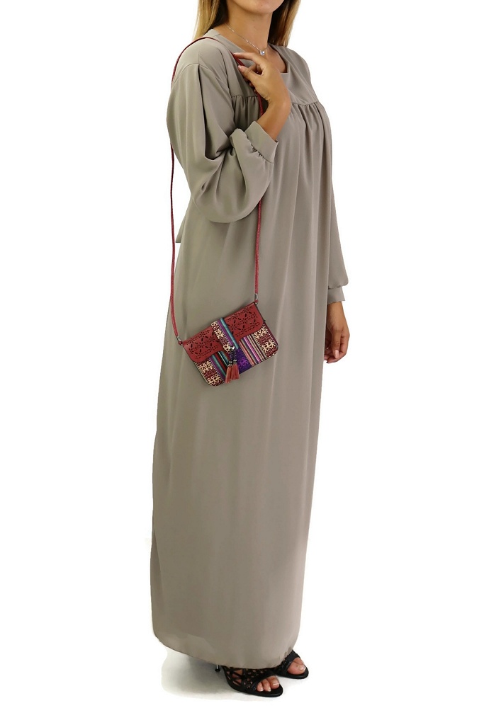 Robe de soirée Abaya avec kimono intégré (Kibaya) pour femme - Couleur Aubergine - REF. 35719 (29.90 €)