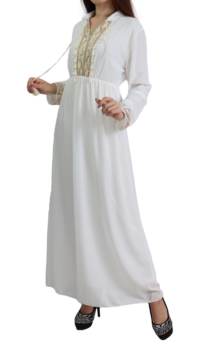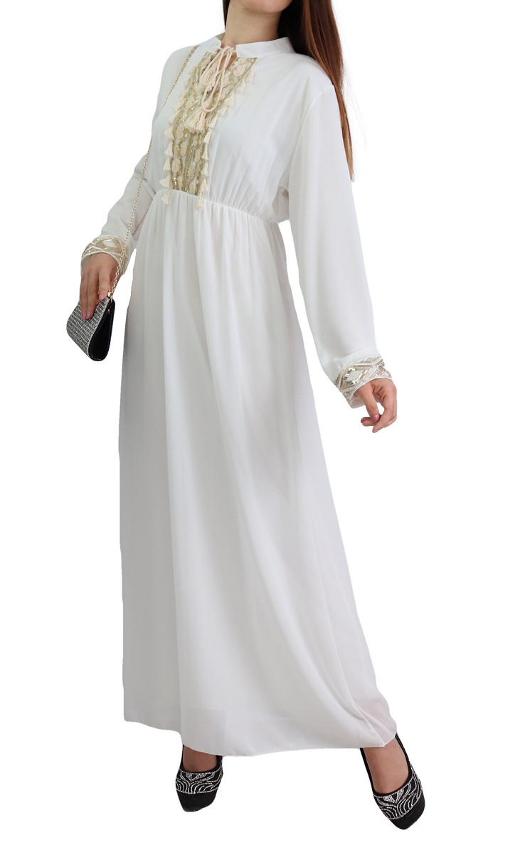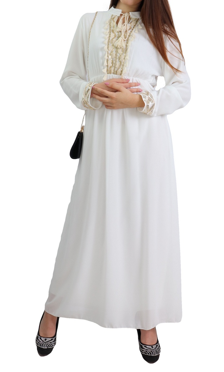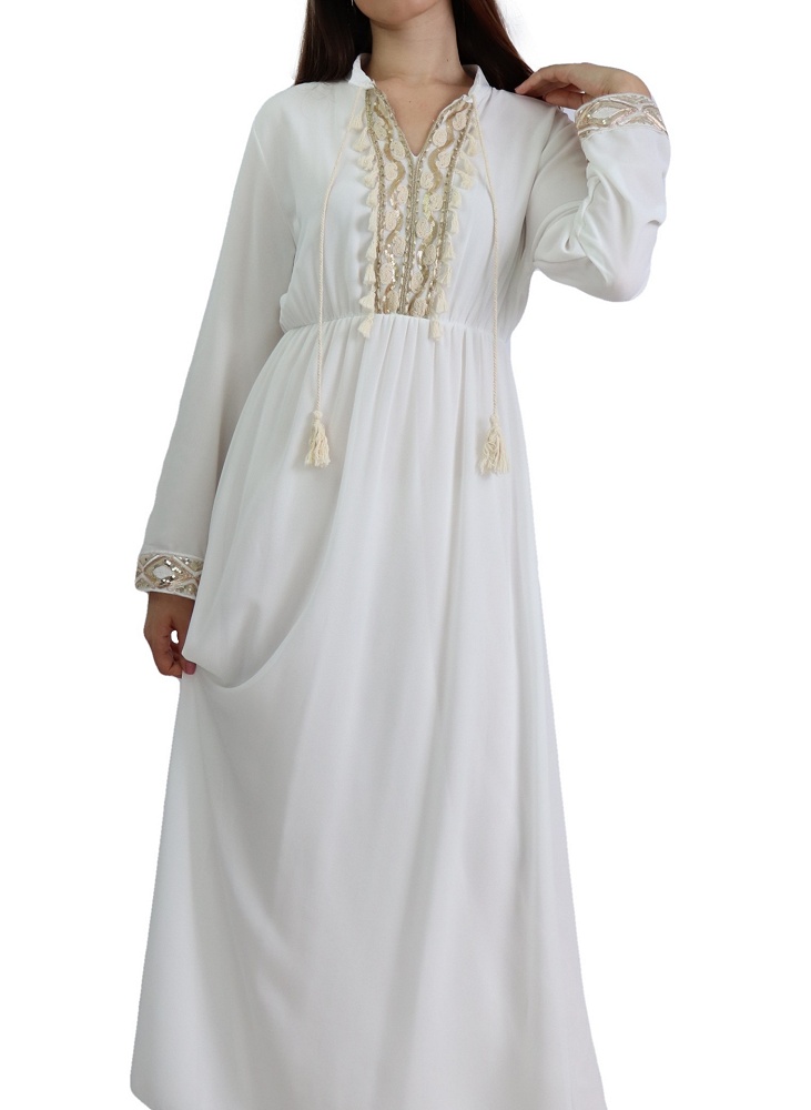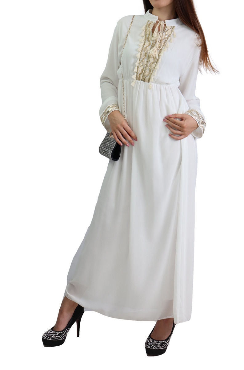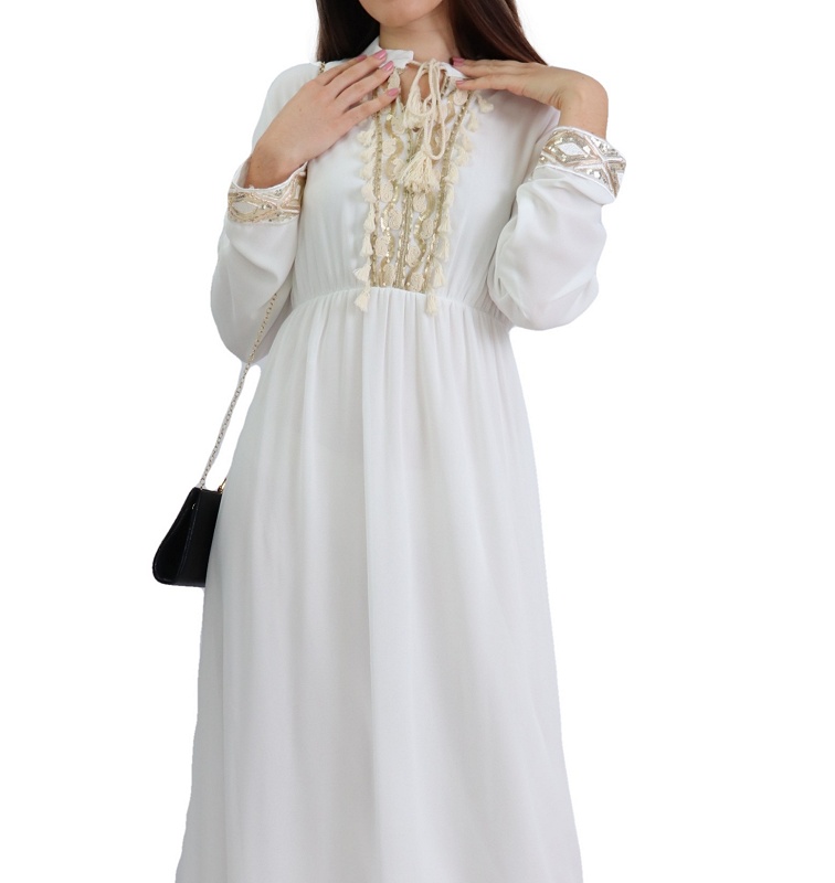 Robe fluide pour femme avec strass et pompons - Couleur Blanc Vetement & Accessoire
