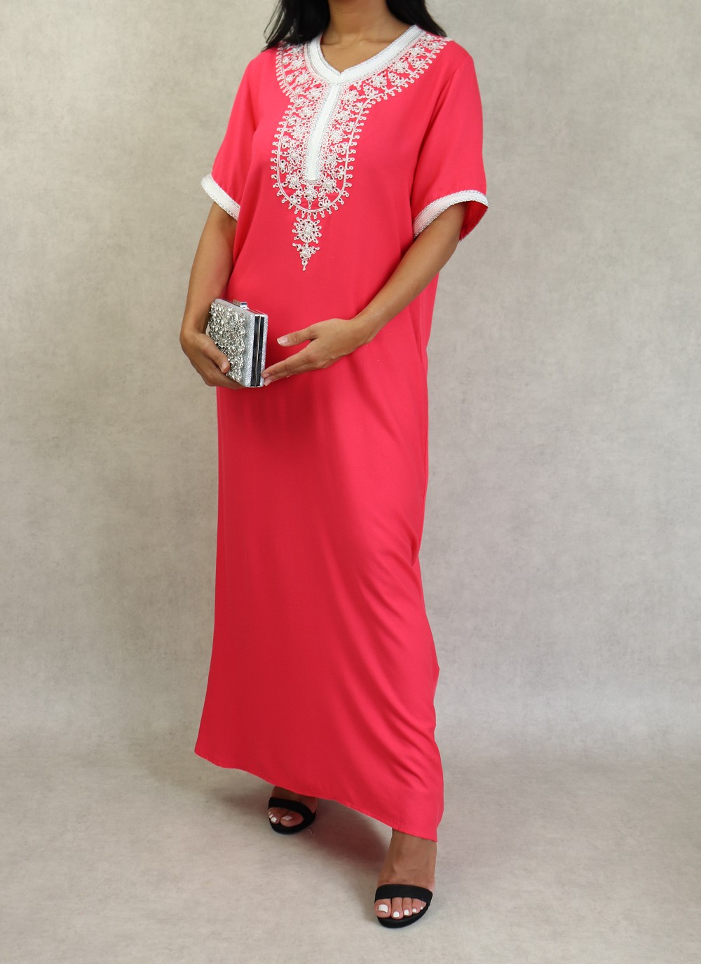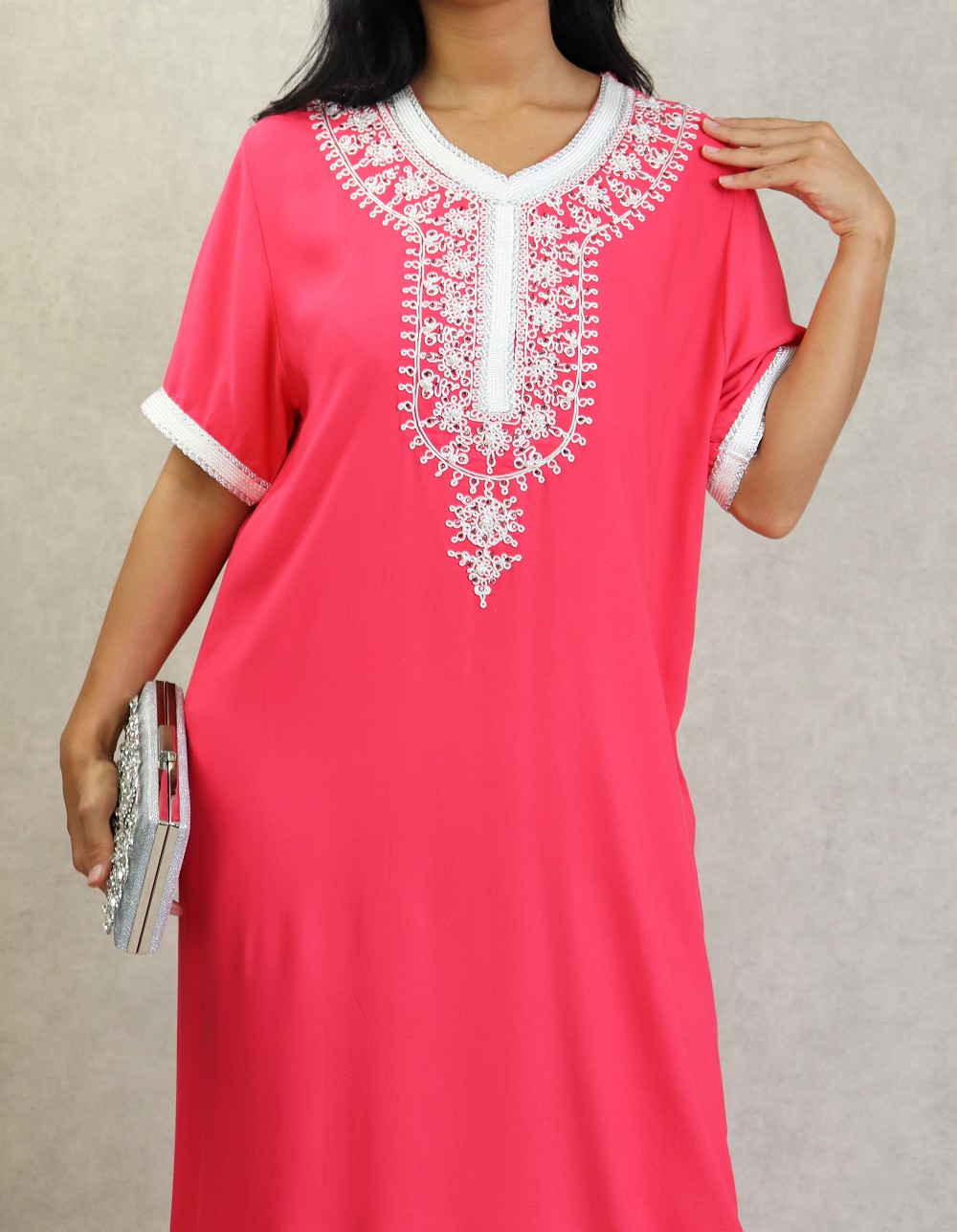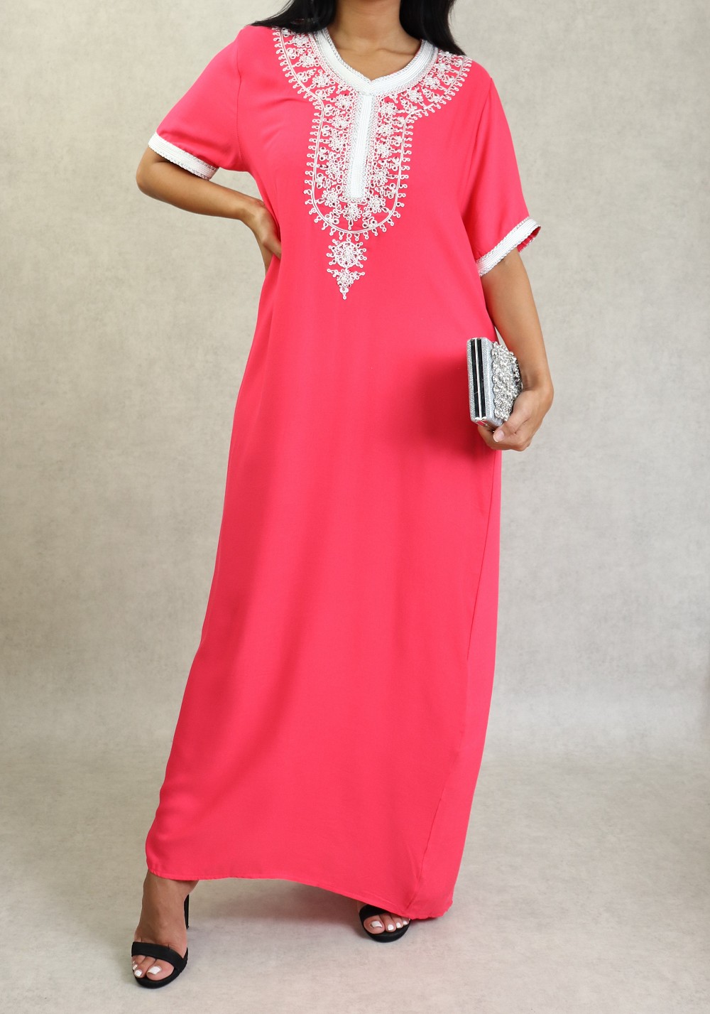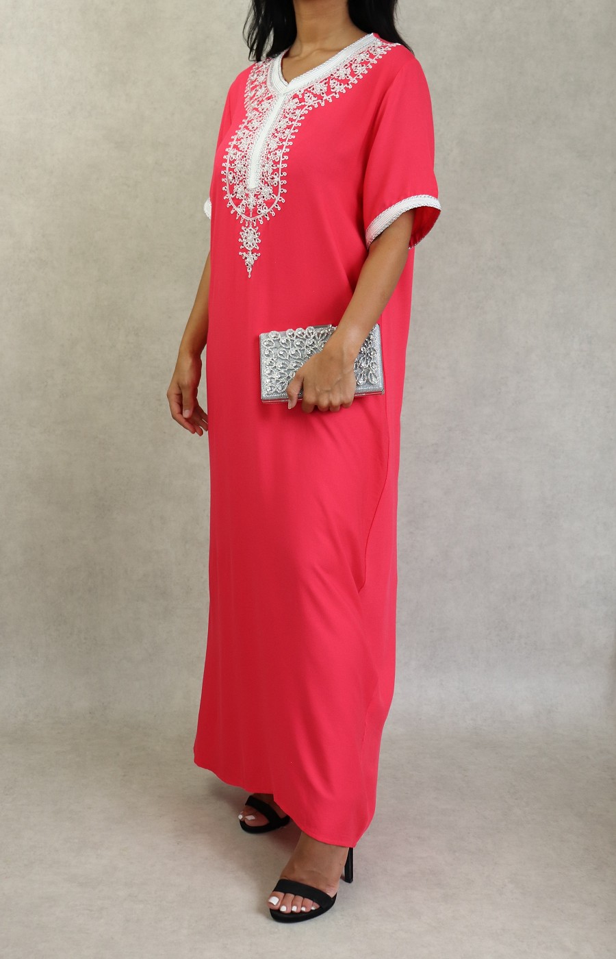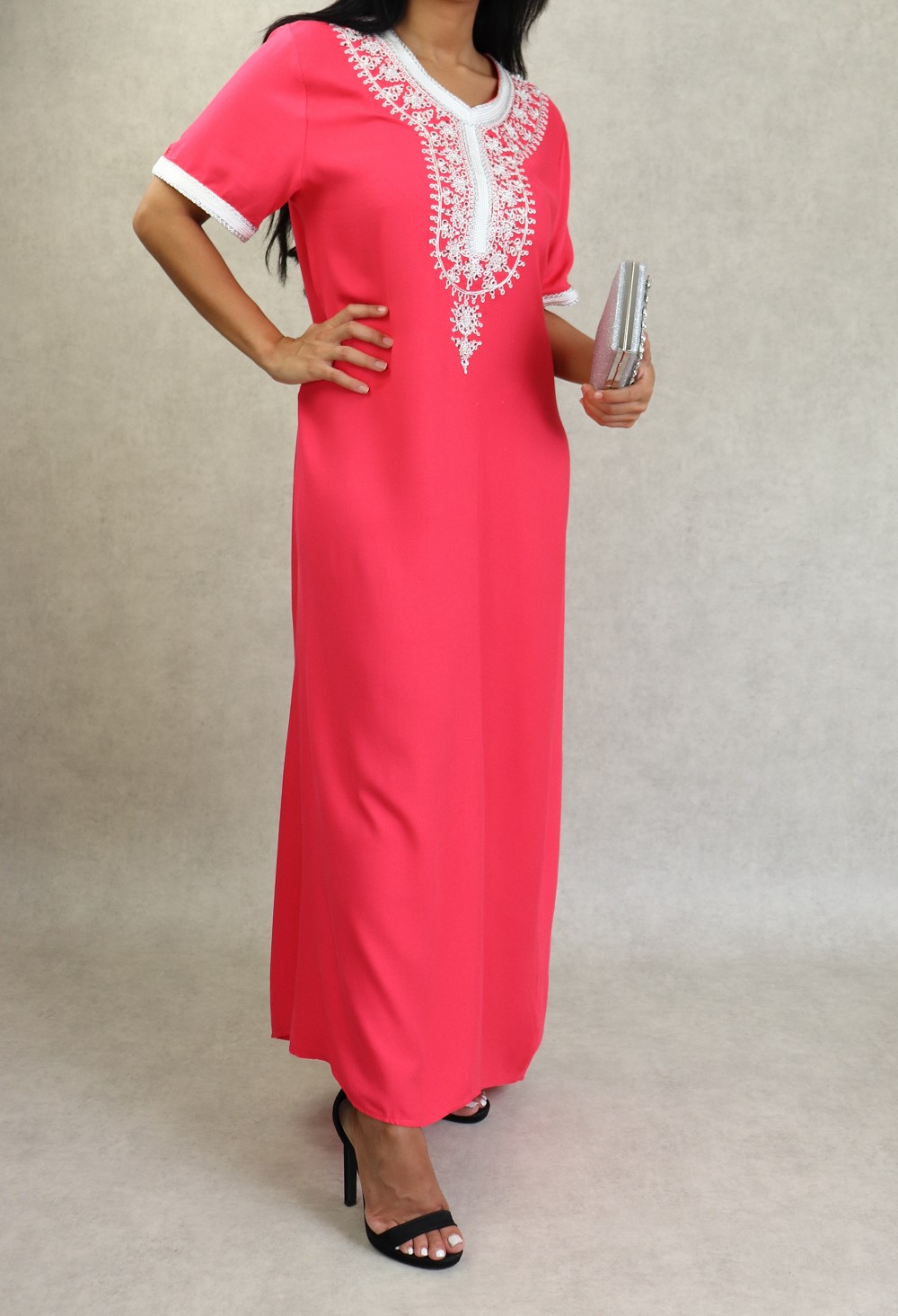 Cette robe orientale à manches courtes, encolure en cœur, tissu doux type coton et léger vous donnera une allure incroyable.