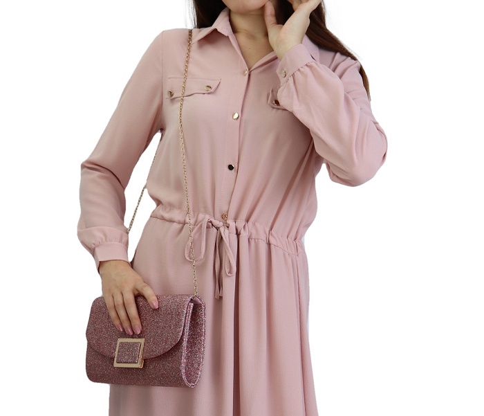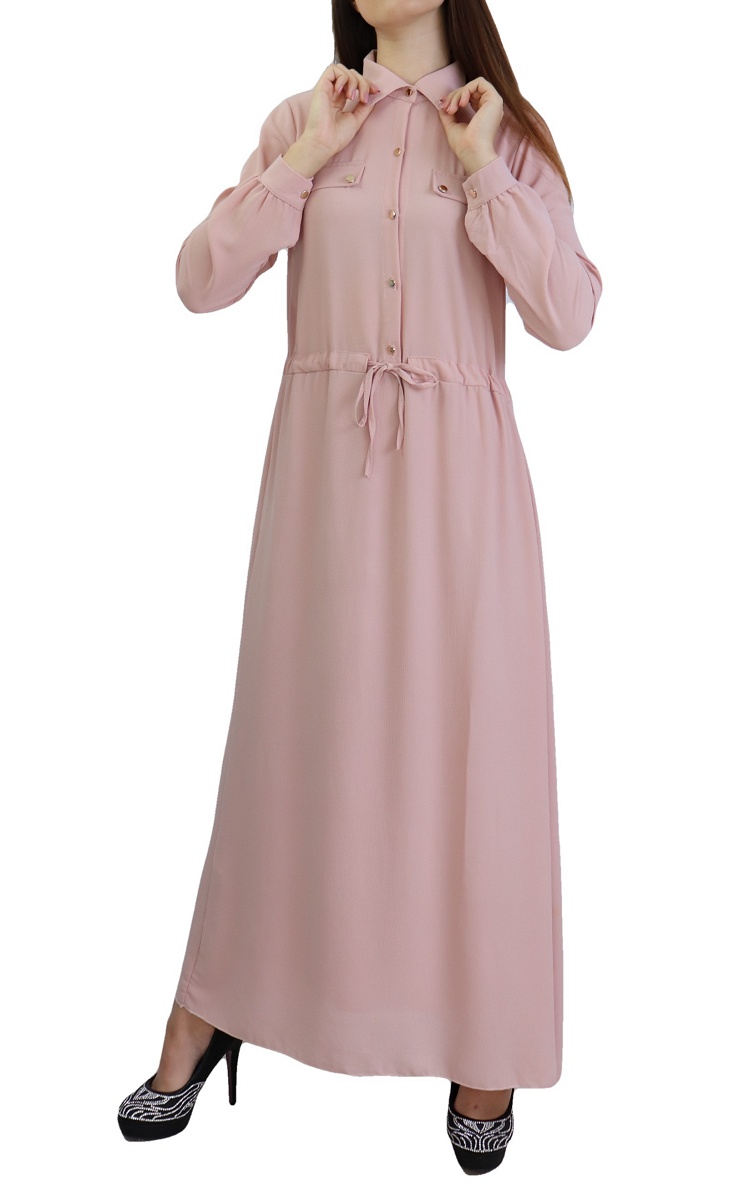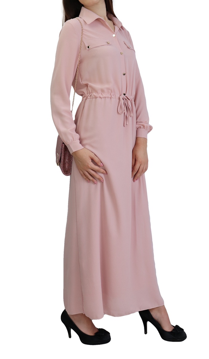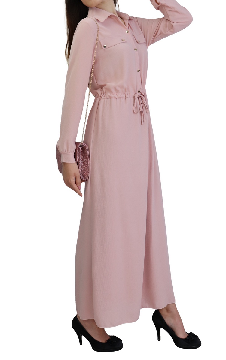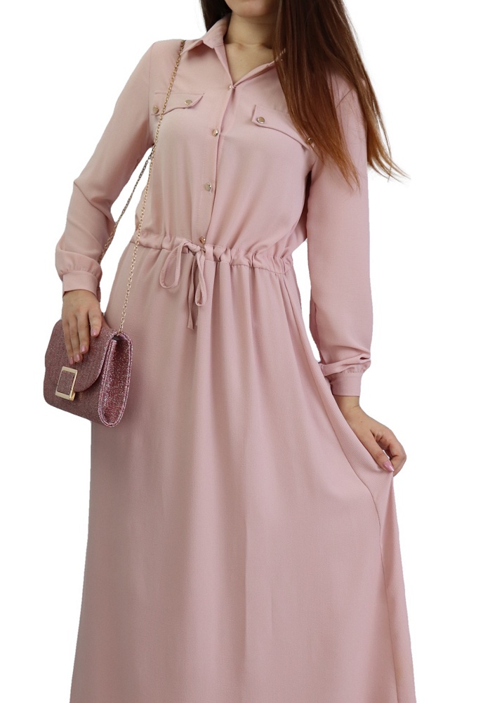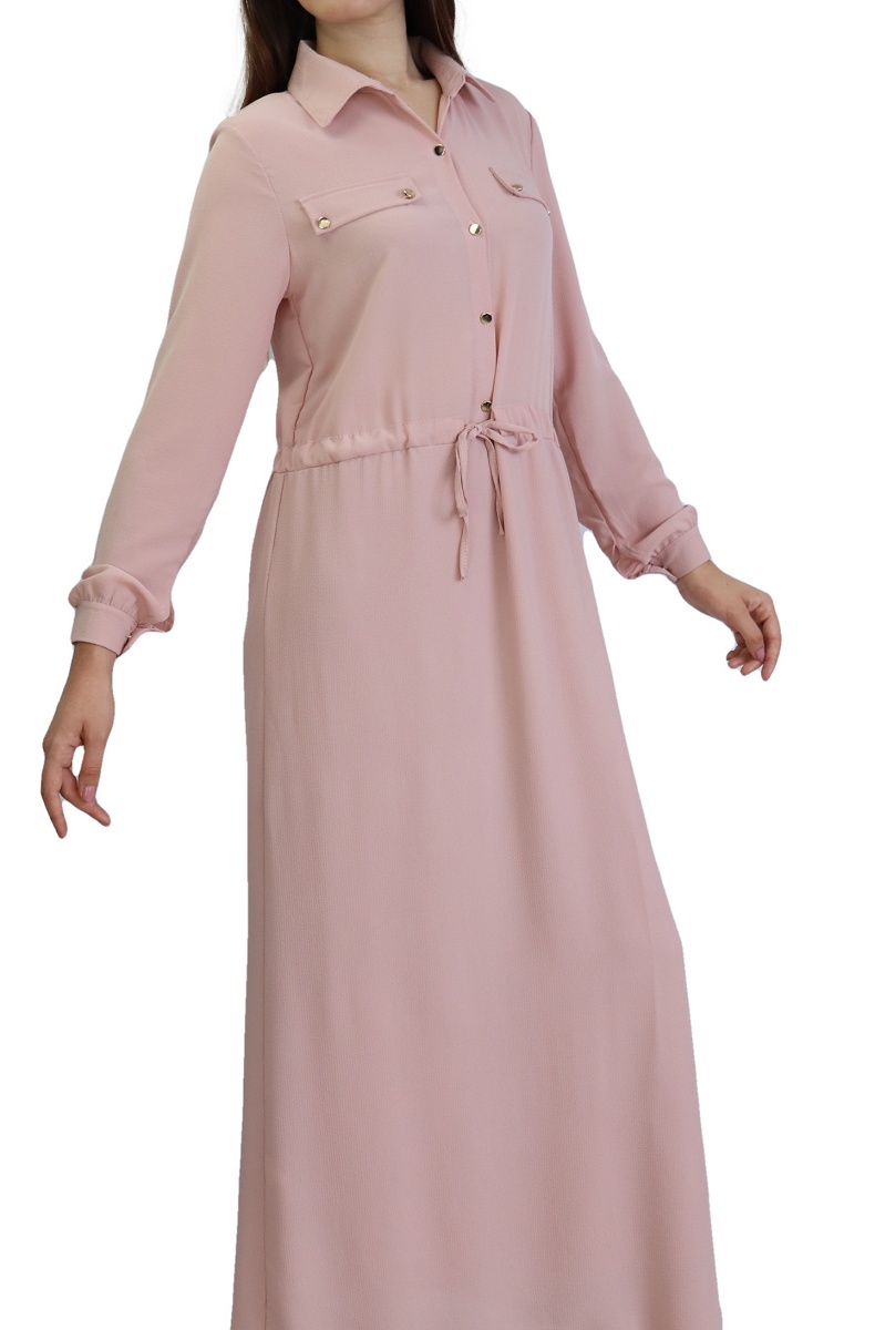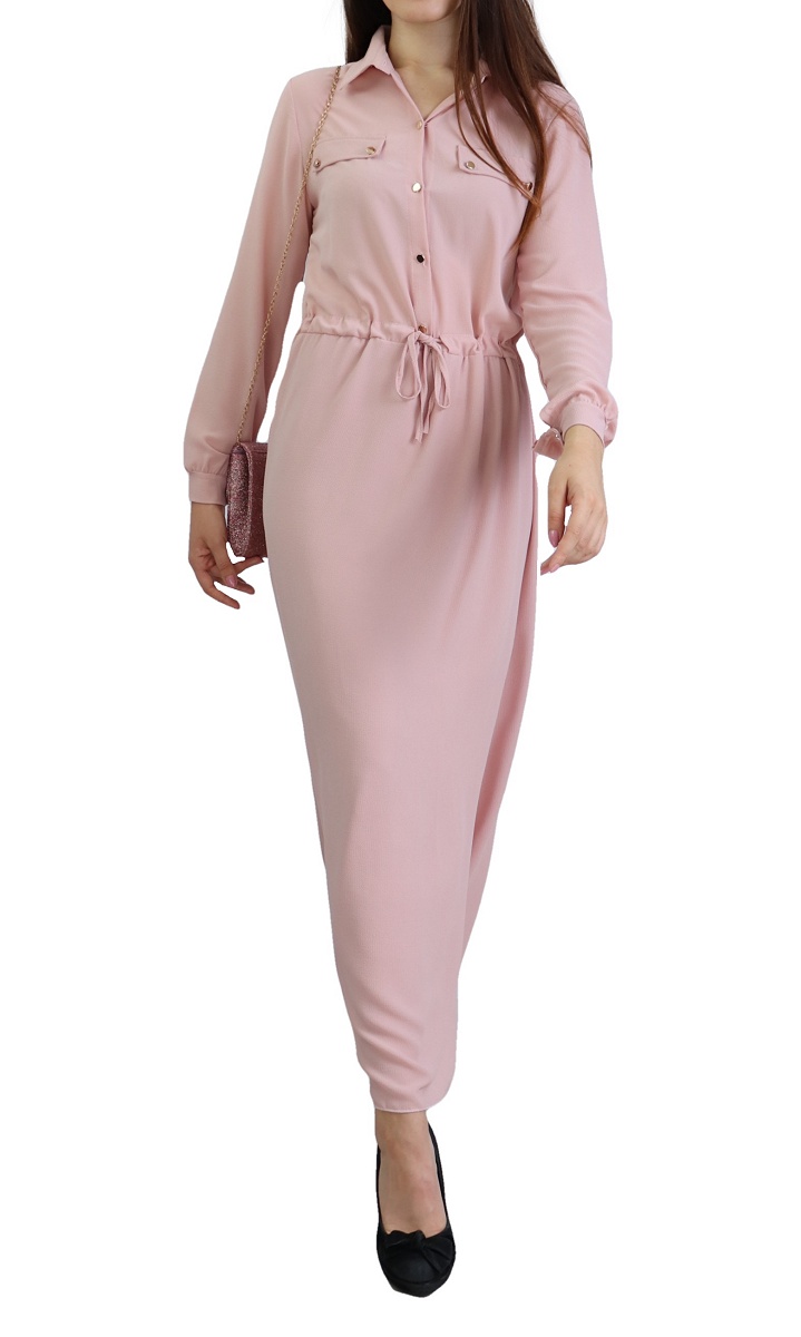 Robe de ville boutonnée manches longues pour femme - Couleur Rose pale Vetement & Accessoire