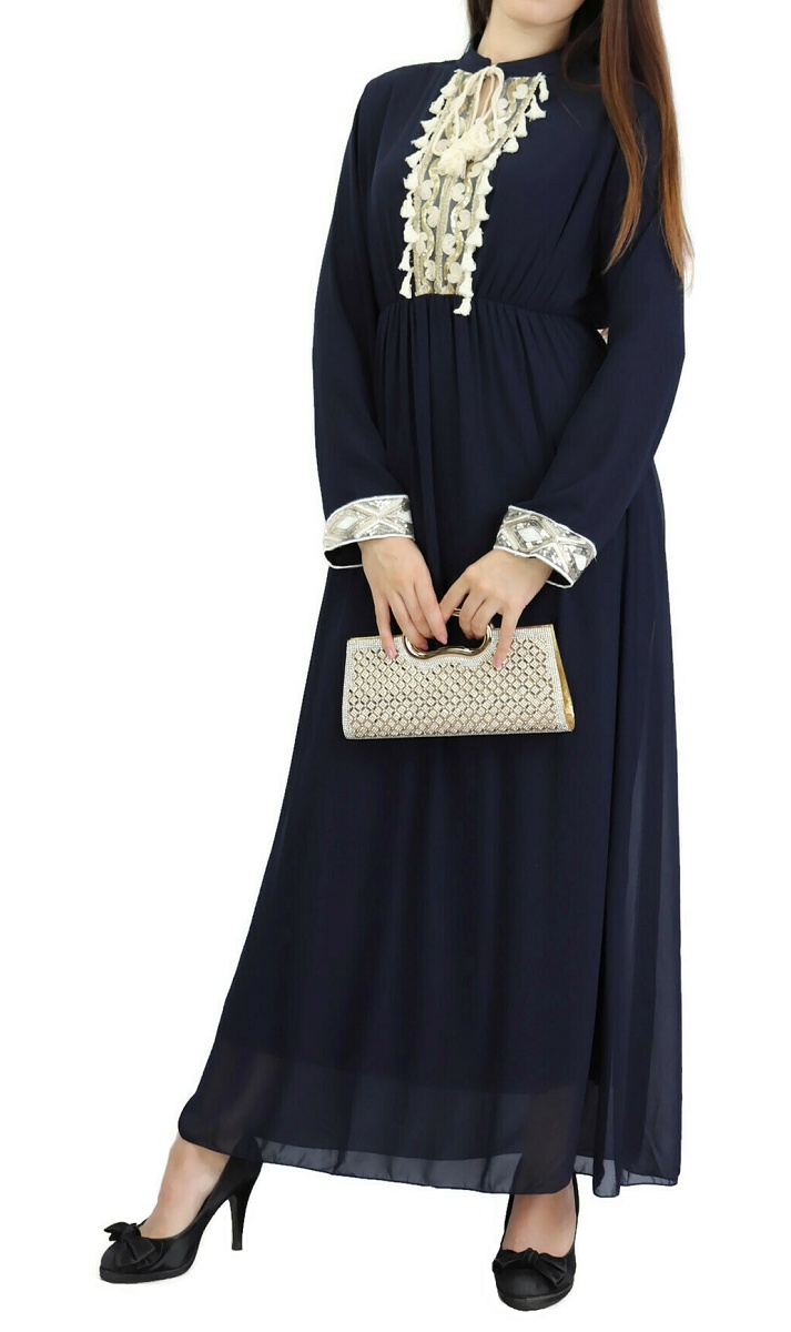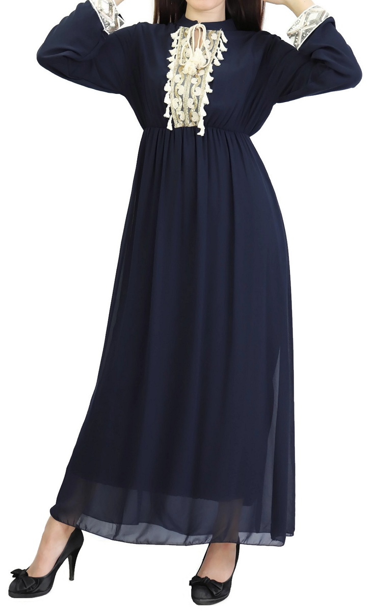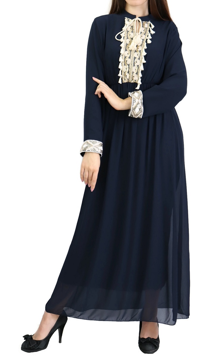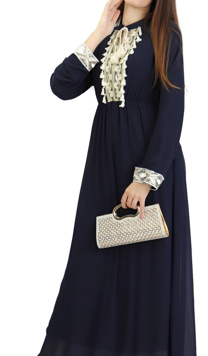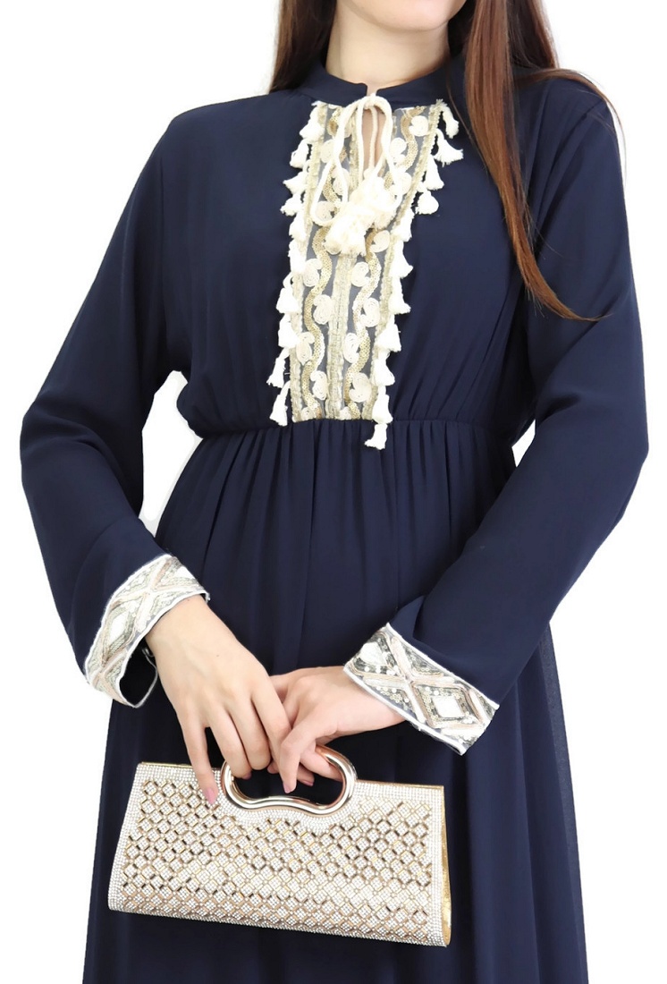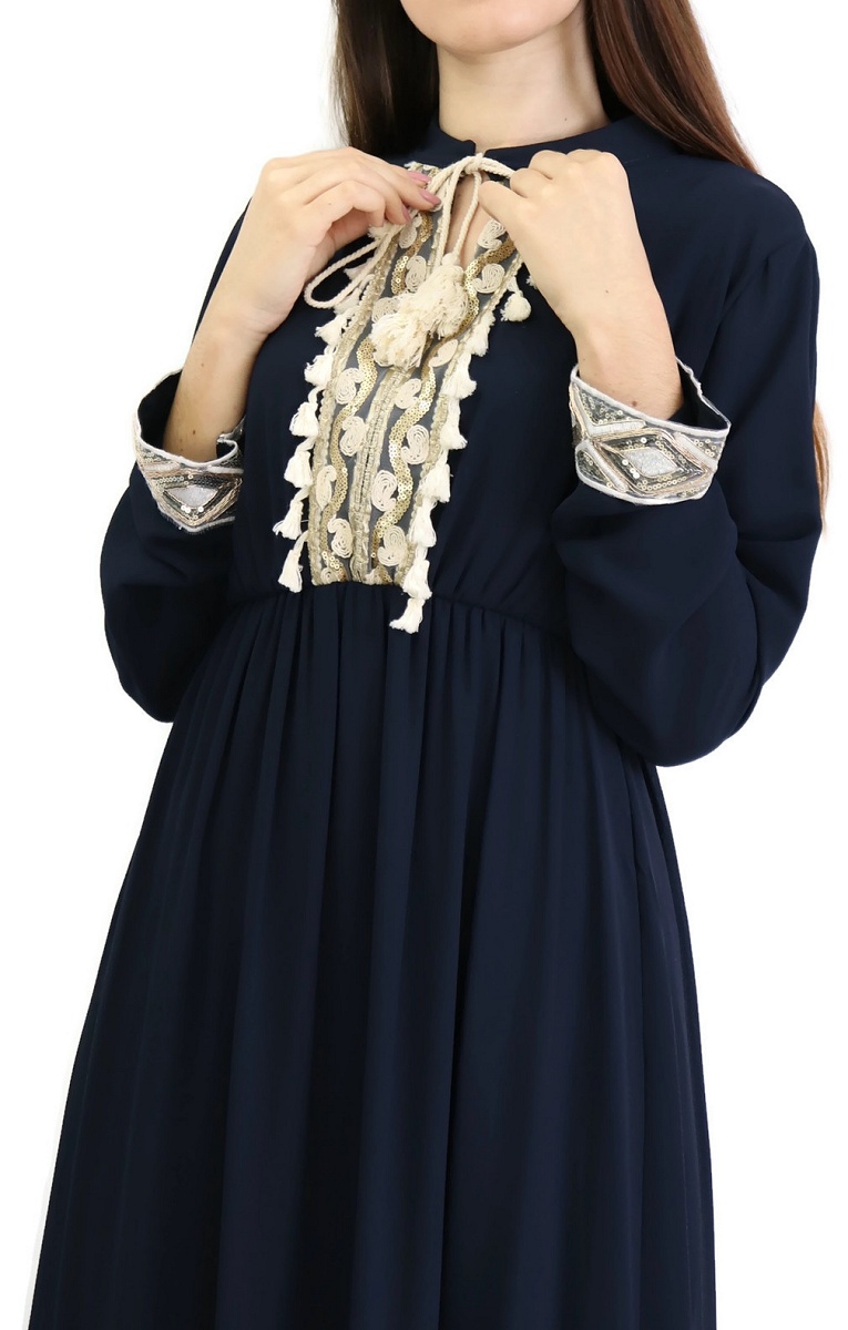 Robe fluide pour femme avec strass et pompons - Couleur Bleu nuit Vetement & Accessoire