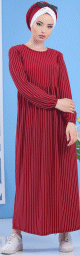 Robe femme décontractée à rayures de couleur grenat (Vêtement grande taille en ligne pas cher) - REF. 30379 (25.00 €) - En Promotion à 19.90 €