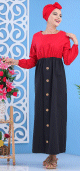 Robe longue bicolore à boutons pour femme - Couleur rouge coquelicot - REF. 30383 (25.00 €)