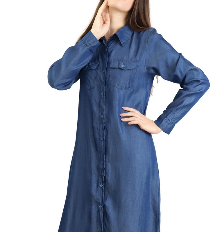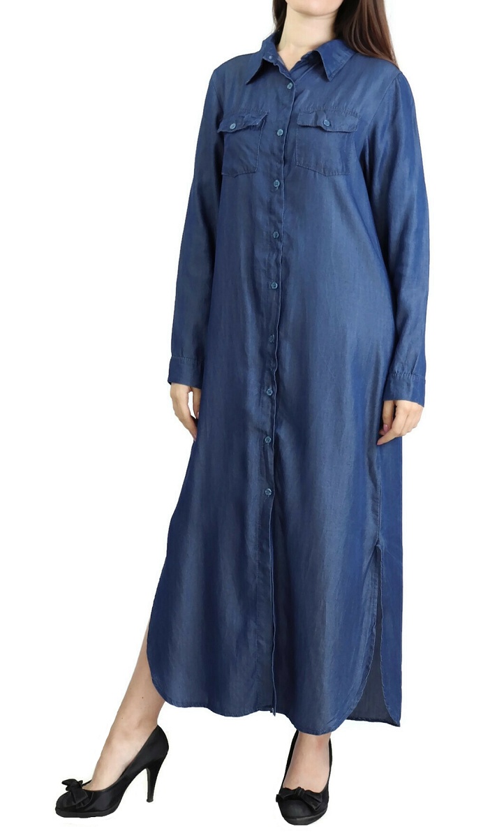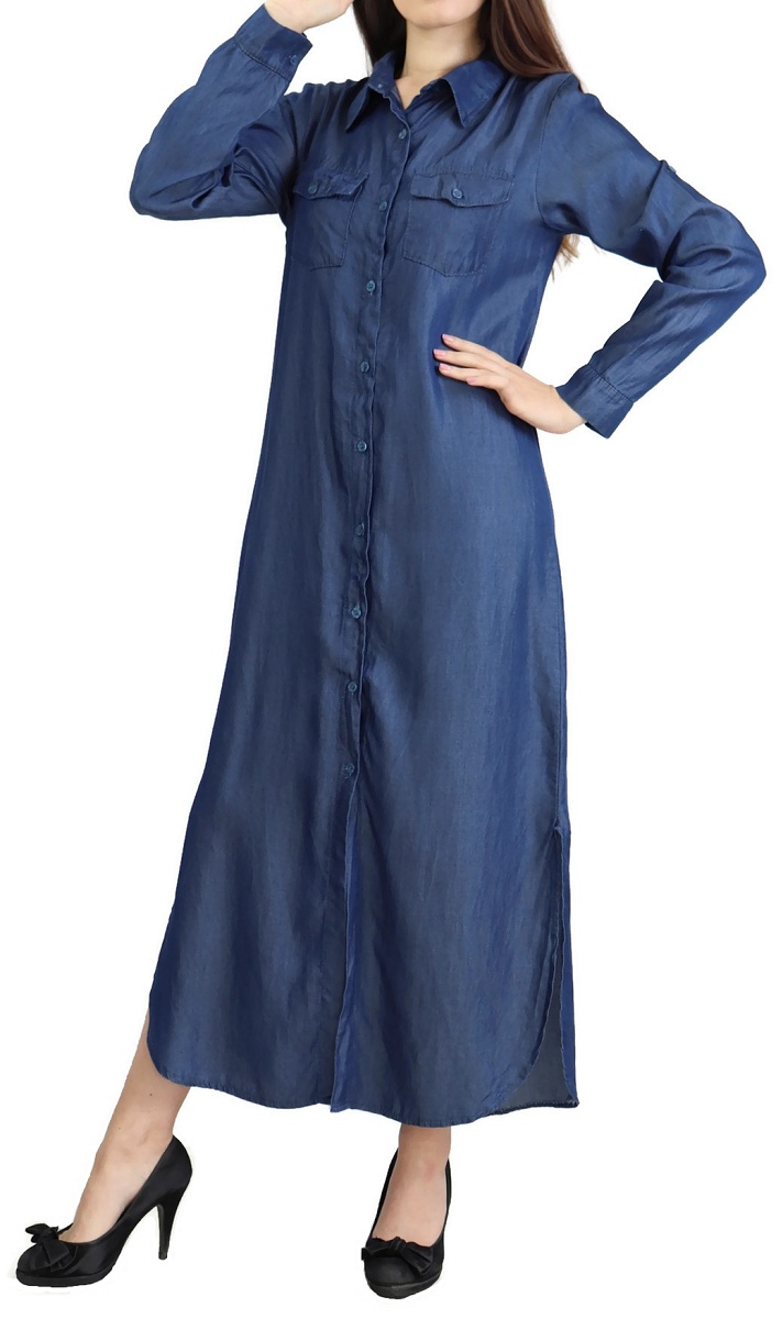 Robe chemise longue pour femme de marque Amelis Paris - Couleur jean brut Vetement & Accessoire