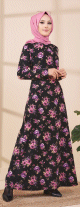 Robe noire fleurie tissu crêpe (Vetement Hijab) - REF. 32305 (29.90 €) - En Promotion à 22.90 €