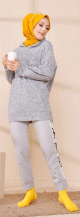 Tunique type sweat long à capuche (Vêtement de tous les jours pour Hijab) - Couleur gris clair - REF. 35429 (22.00 €) - En Promotion à 16.90 €