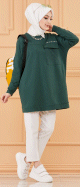 Tunique décontractée ample avec grande poche (Sweat femme Hijab) - Couleur vert émeraude - REF. 36568 (22.00 €)