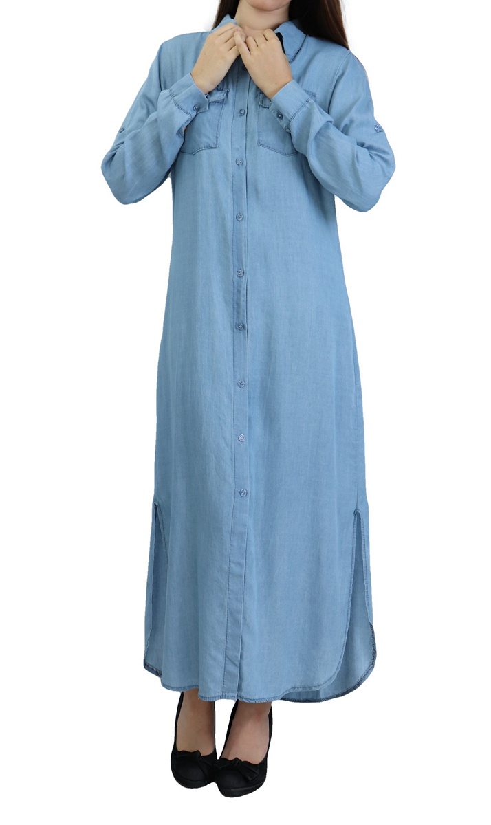 Veste longue pour femme - style chemise (Mode Musulmane) - Couleur bleu indigo - REF. 32898 (29.90 €)