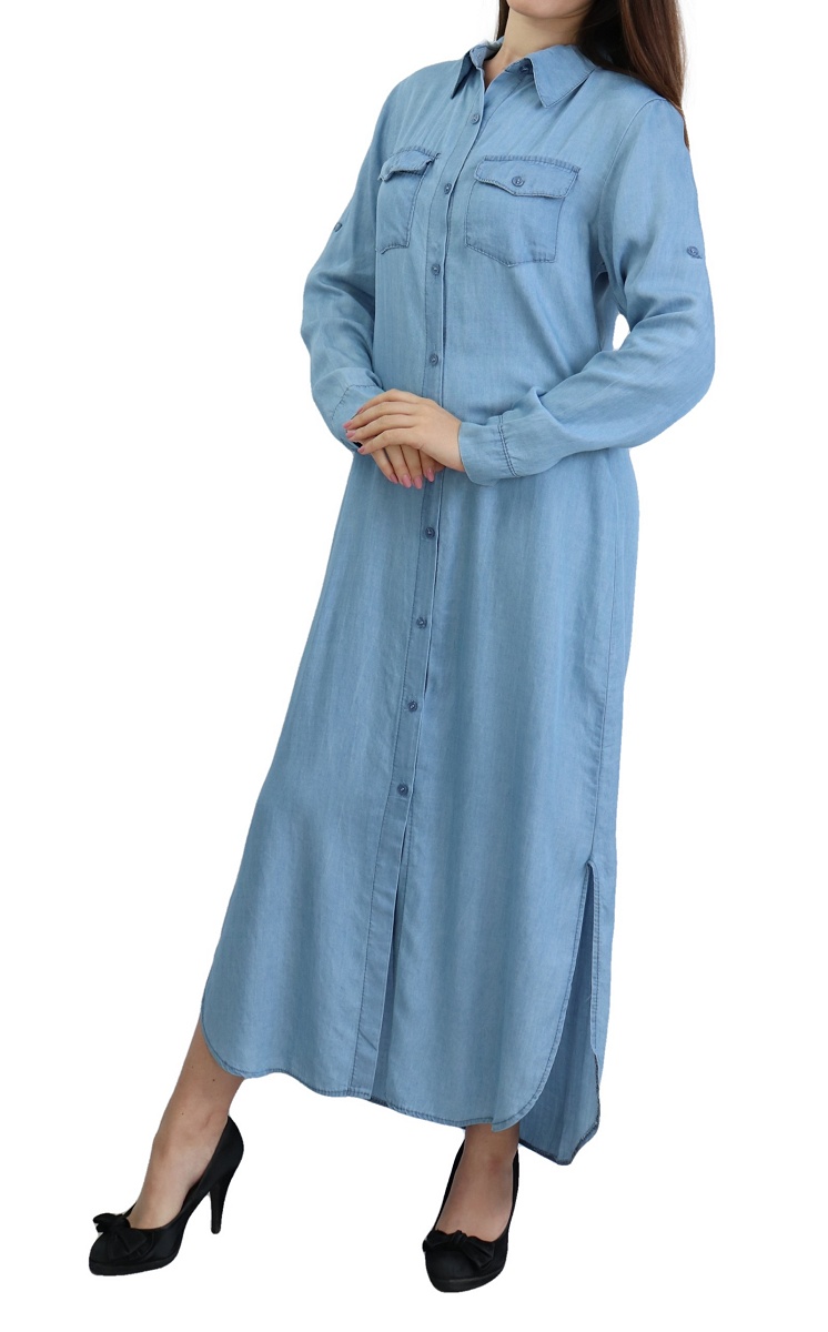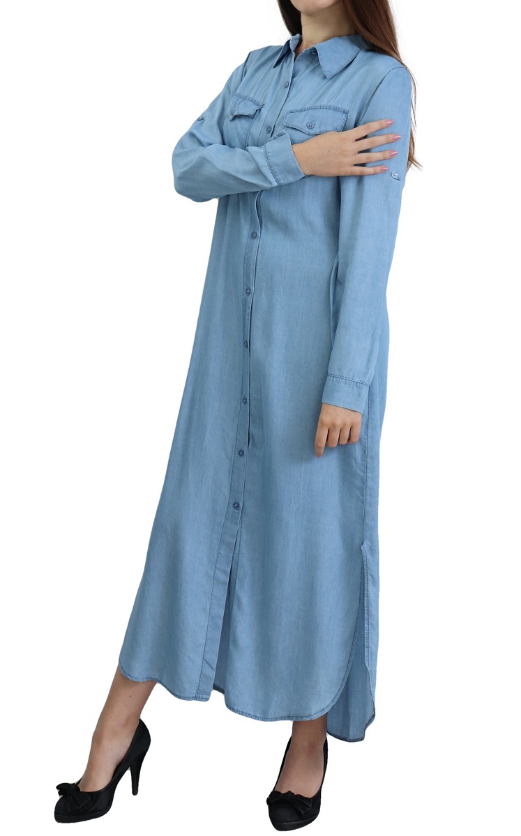Robe chemise longue pour femme de marque Amelis Paris - Couleur bleu jean délavé Vetement & Accessoire
