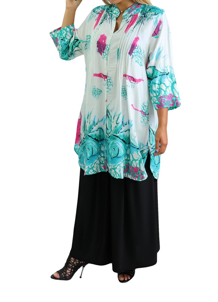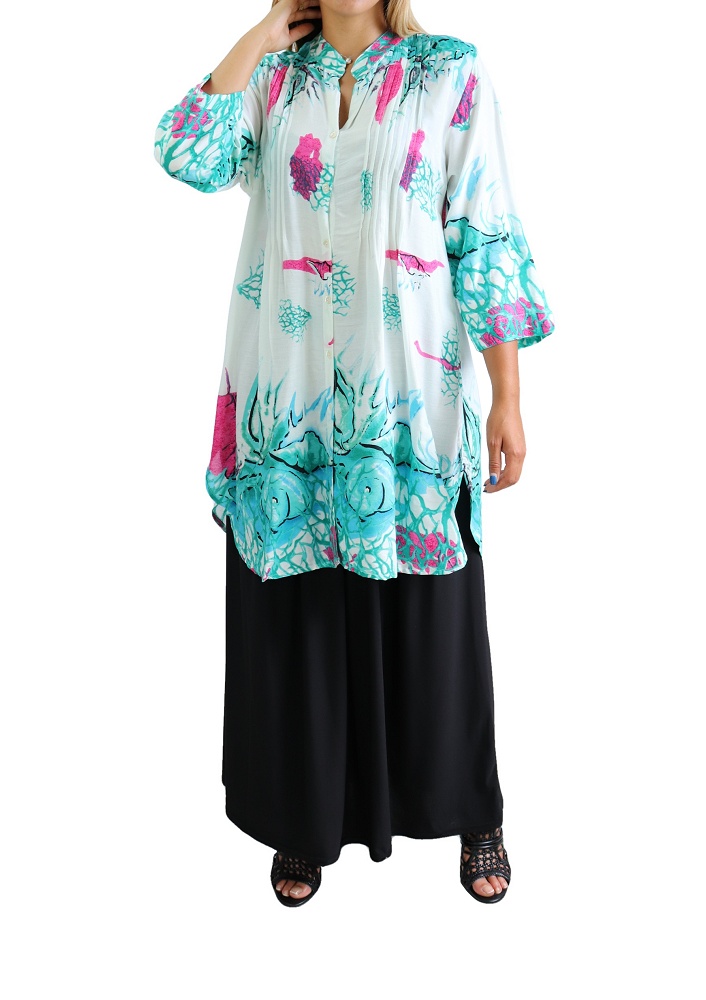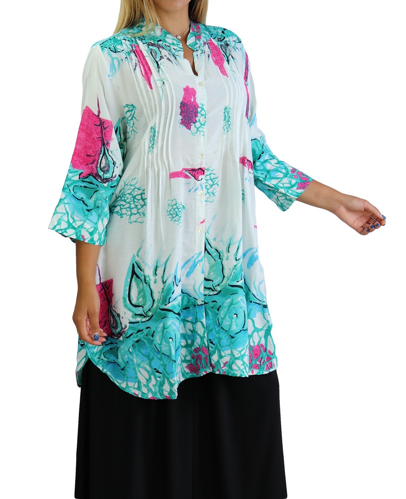 Tunique longue décoration boutons - Couleur vert menthe - REF. 33783 (22.90 €)