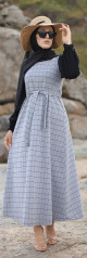 Robe longue à carreaux - Couleur Gris clair - REF. 32811 (29.00 €) - En Promotion à 22.90 €