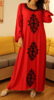 Robe orientale maxi-longue avec de nombreuses broderies à motif fleurs pour femme - Couleur rouge - REF. 33027 (29.00 €)