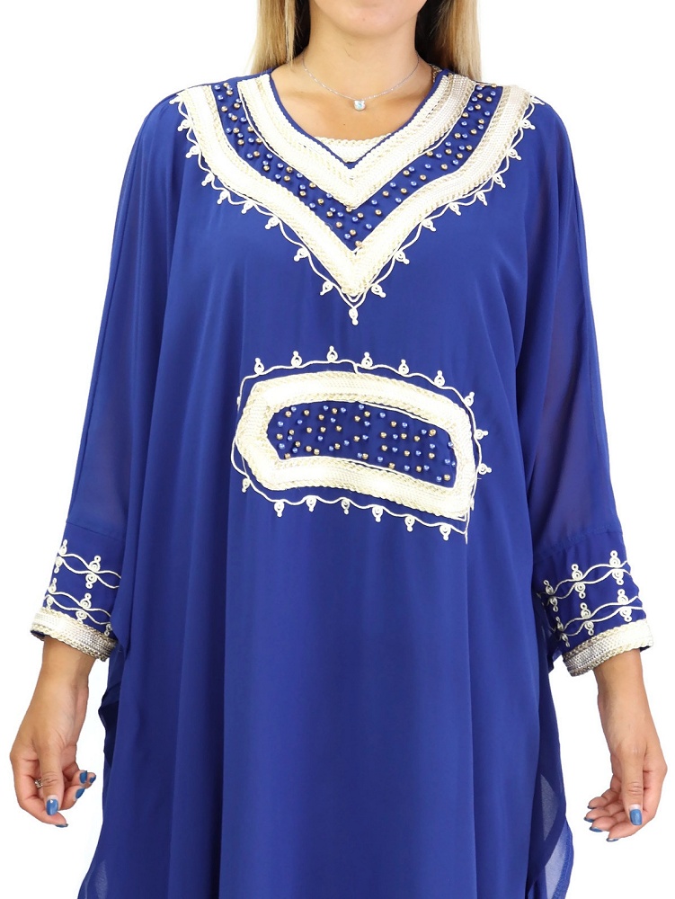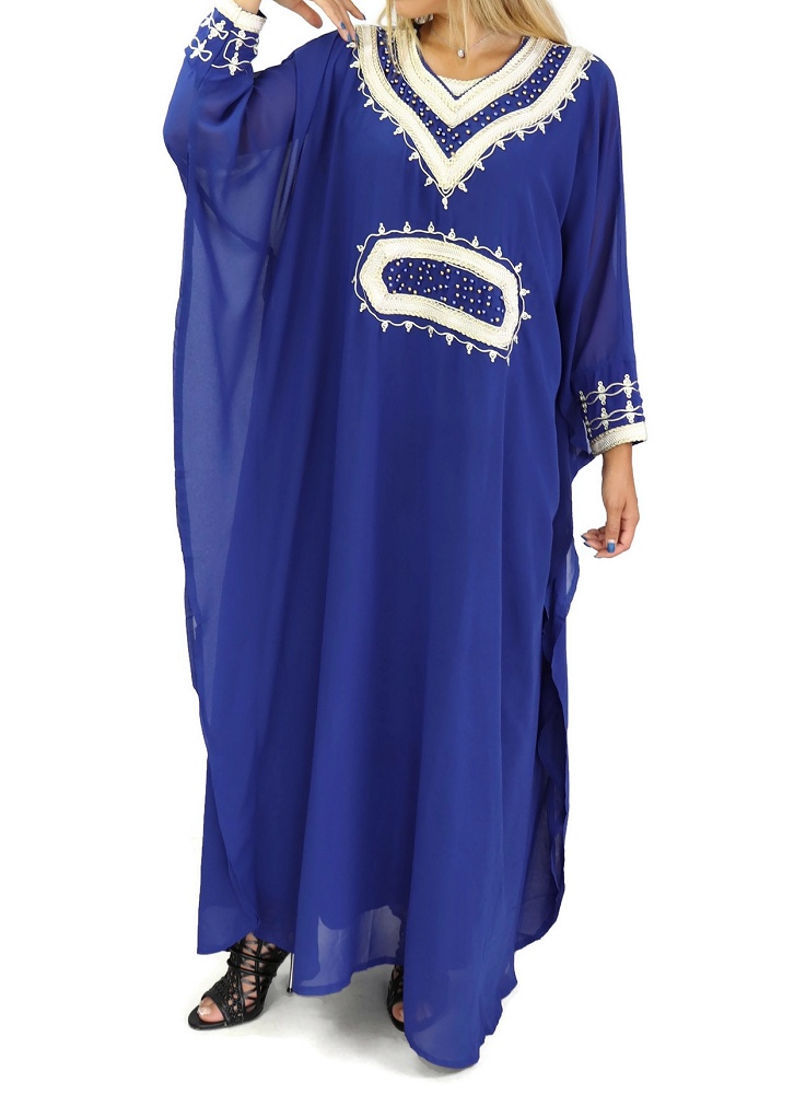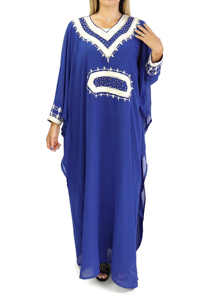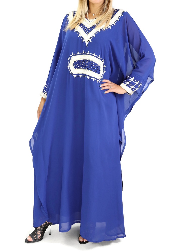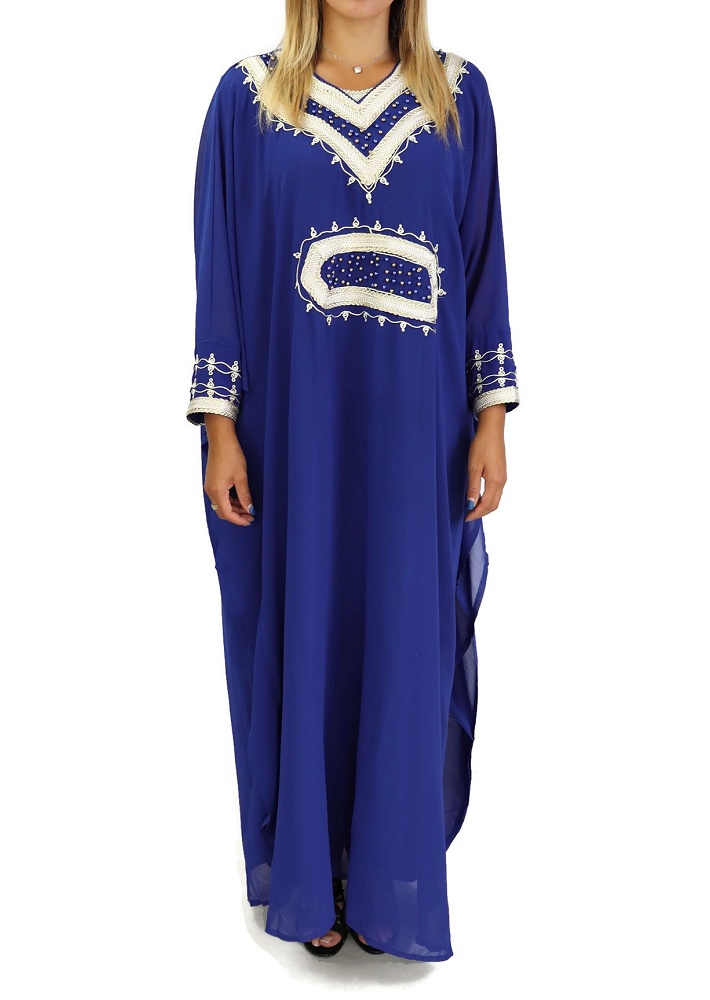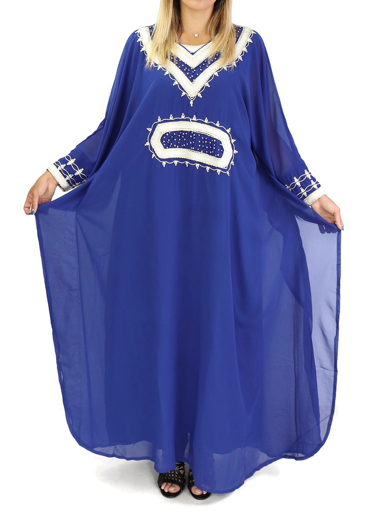 Robe orientale manches longues avec broderies - Couleur Bleu roi Vetement & Accessoire