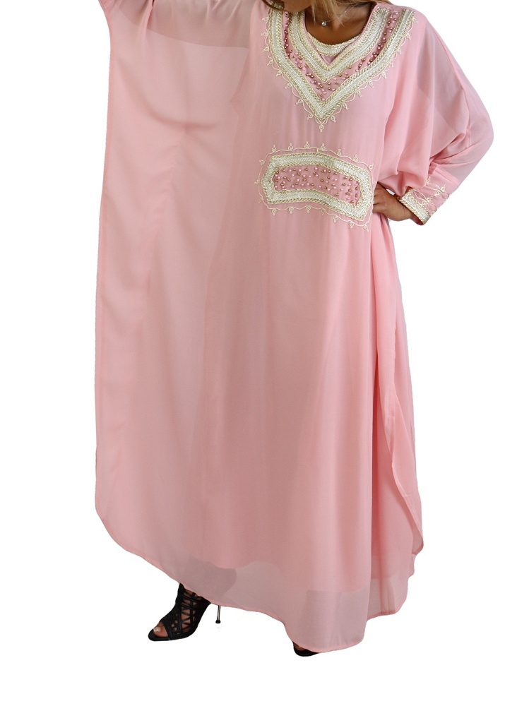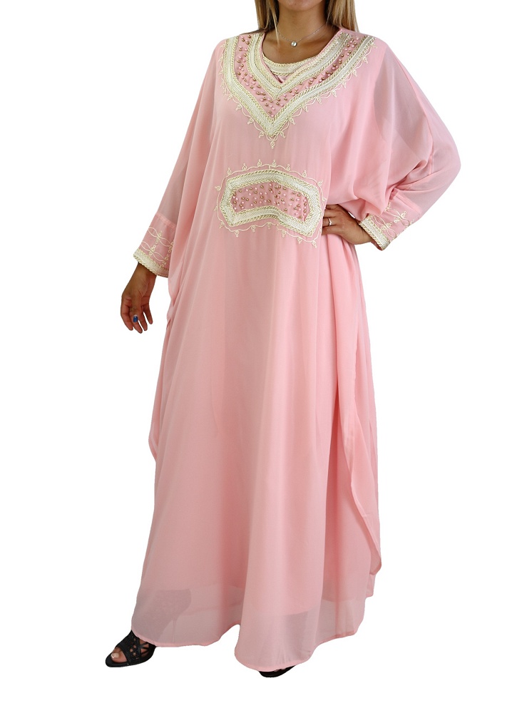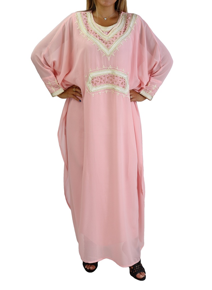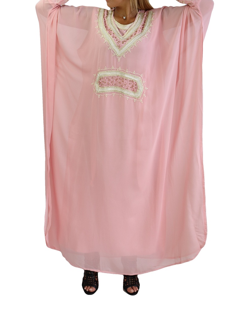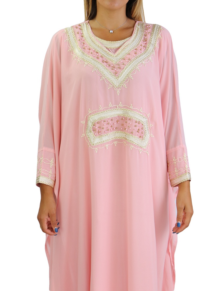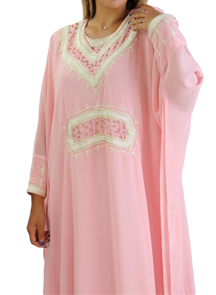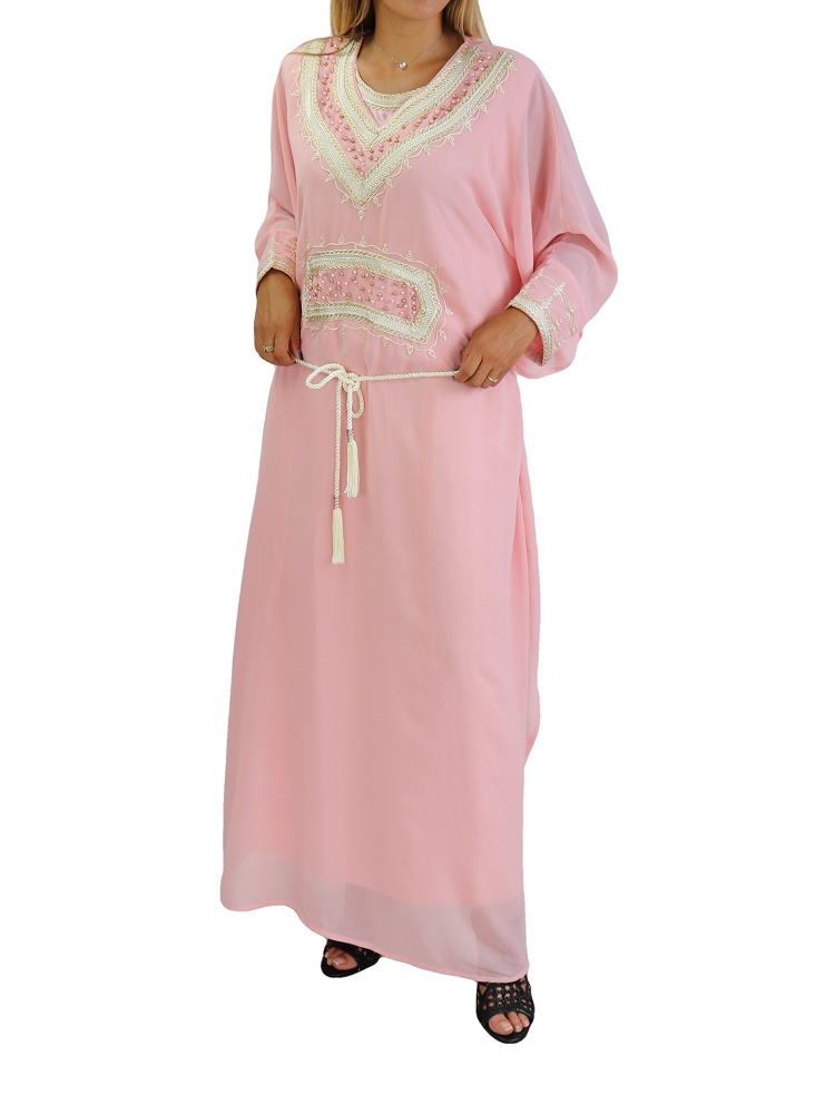 Robe orientale manches longues avec broderies - Couleur Rose Vetement & Accessoire