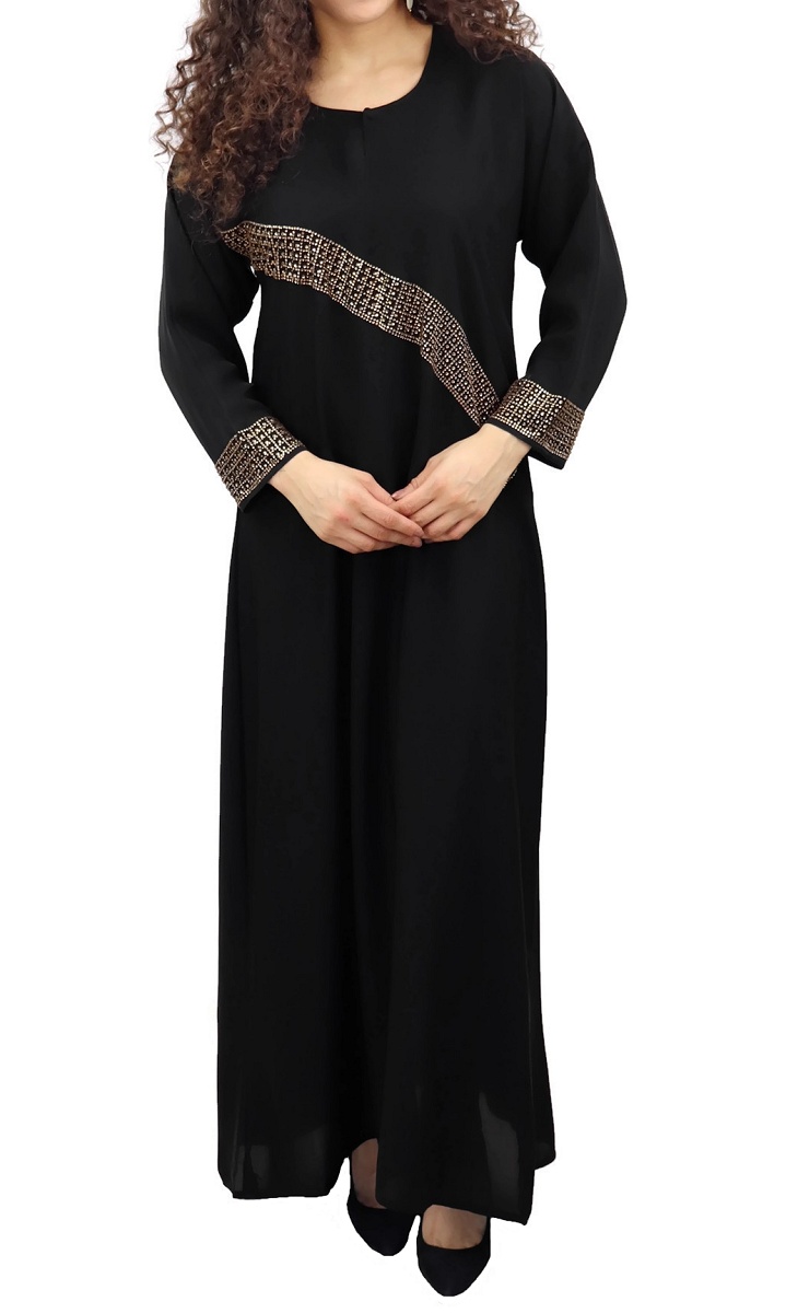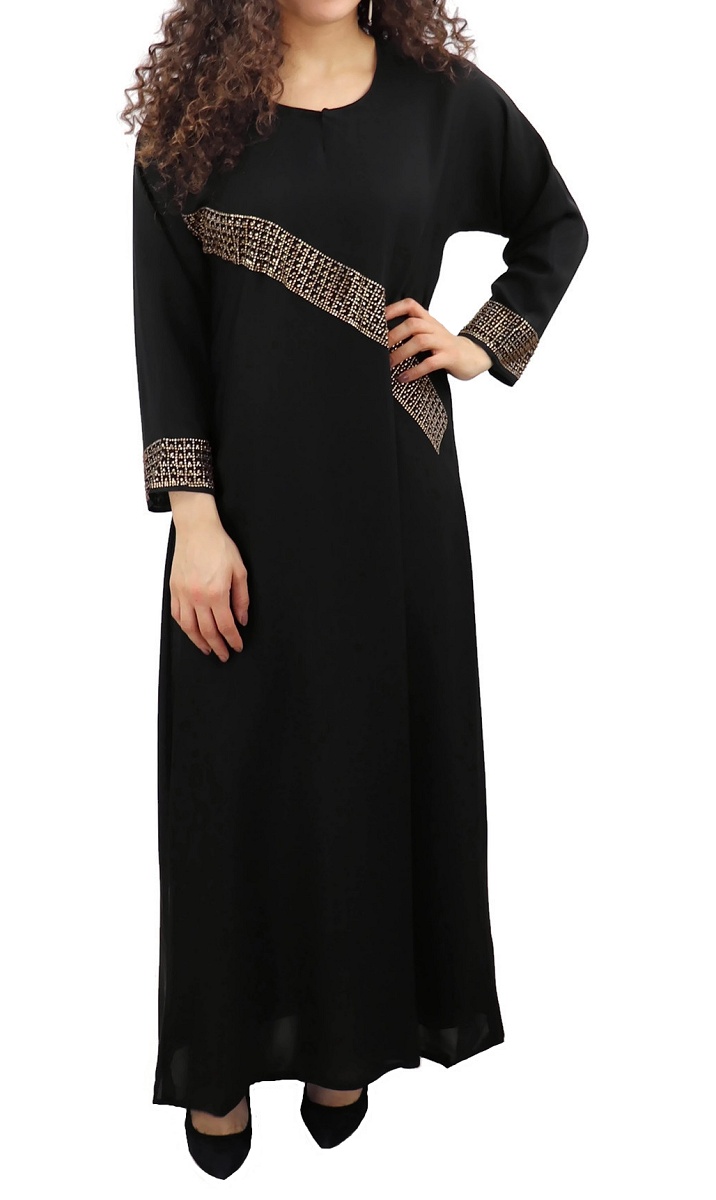 Robe orientale noire fabriquée aux Emirats (Dubaï) ornée de paillettes dorées pour femme Vetement & Accessoire
