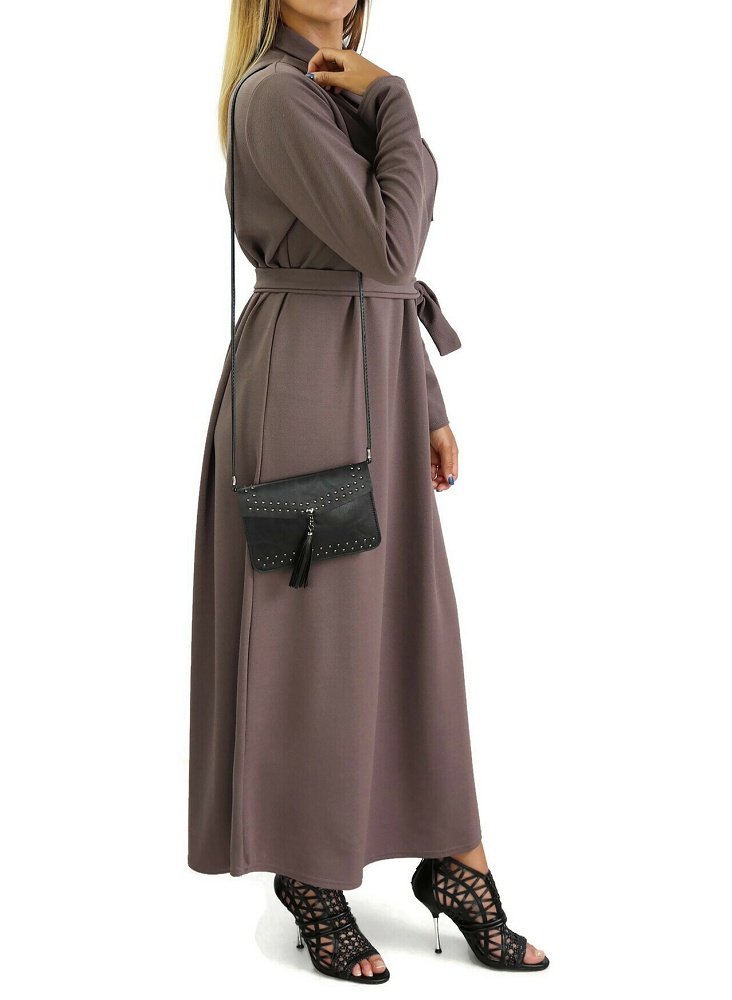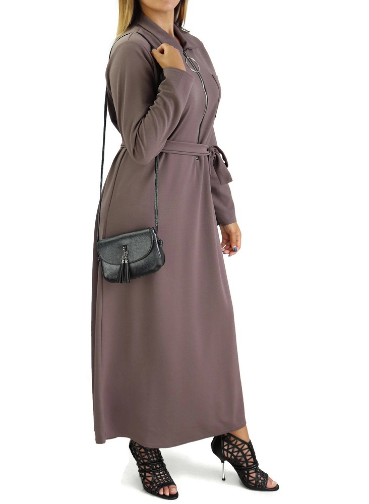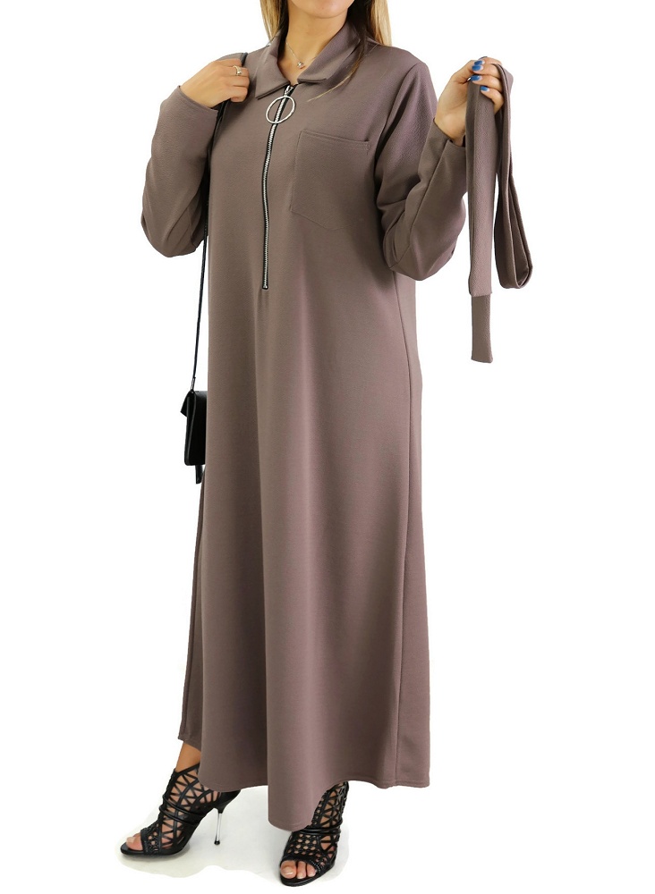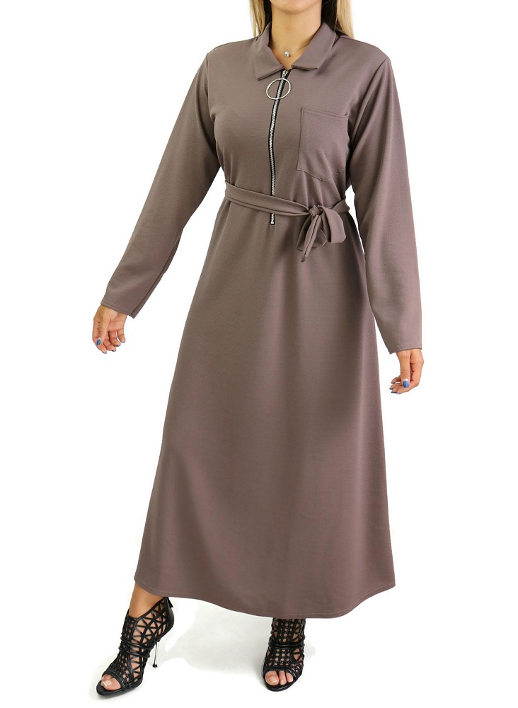 Robe longue fermeture zip avec ceinture pour femme (Taille standard) - Couleur taupe Vetement & Accessoire