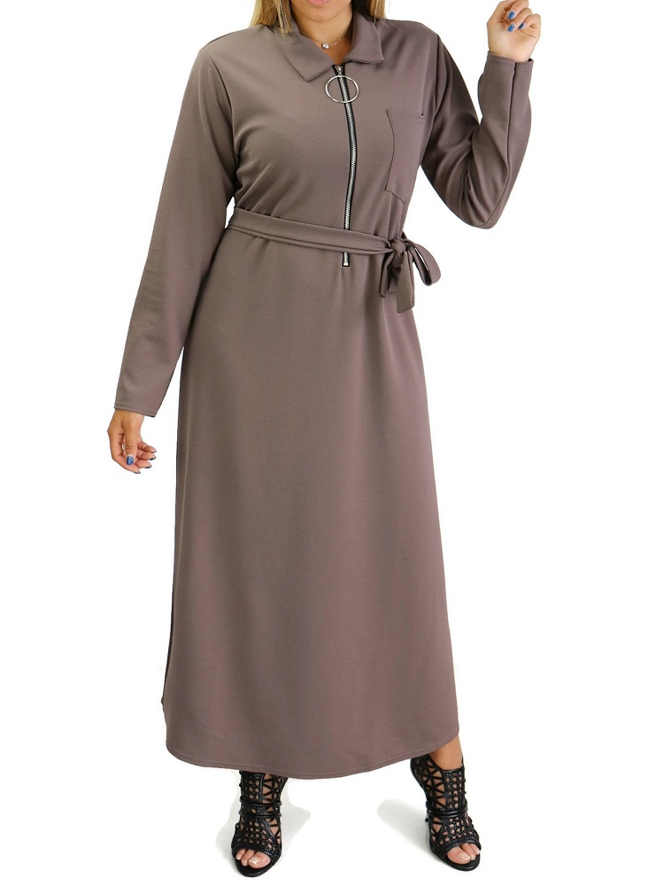 Robe longue fermeture zip avec ceinture pour femme (Taille standard) - Couleur taupe