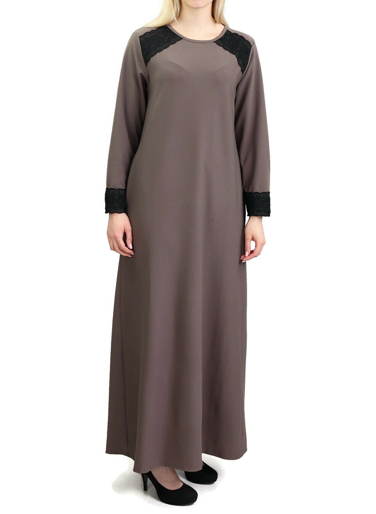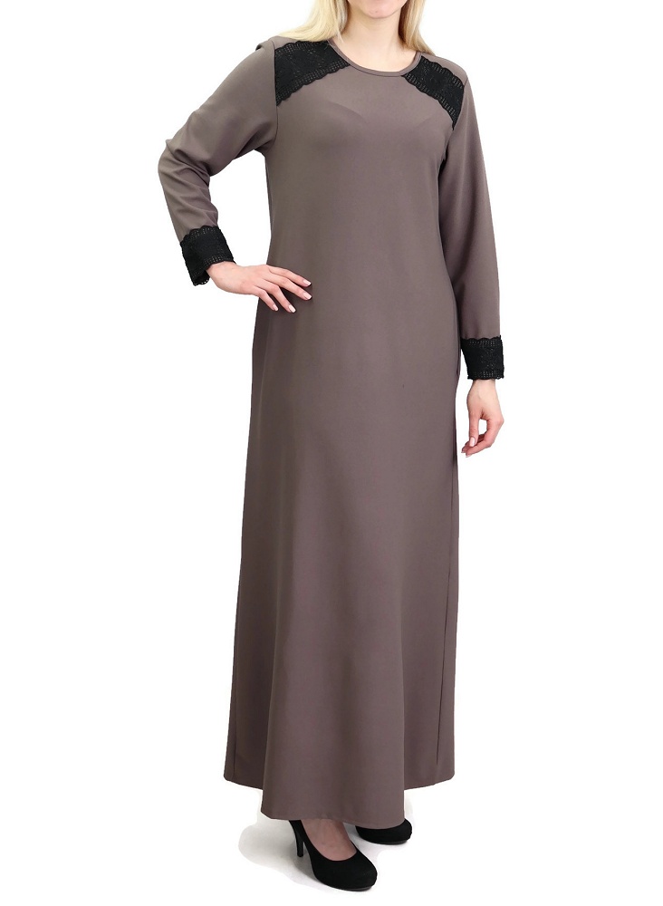 Robe longue à manches longues sobre et chic - Couleur Taupe Vetement & Accessoire