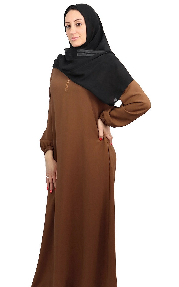 Robe basique, sobre et ample adaptée aux femmes musulmanes voilées.