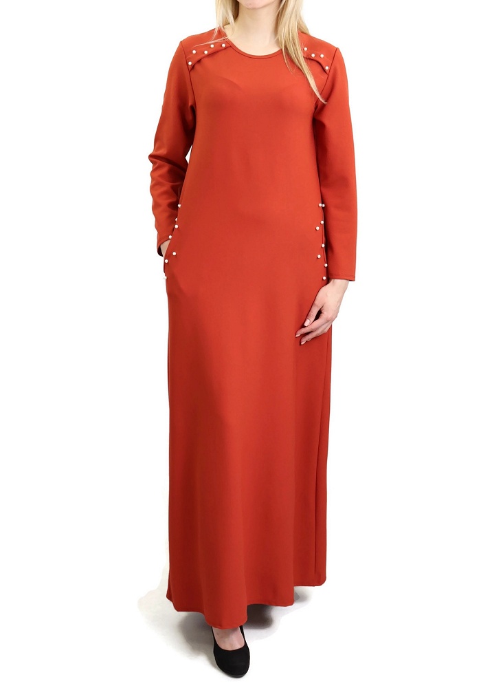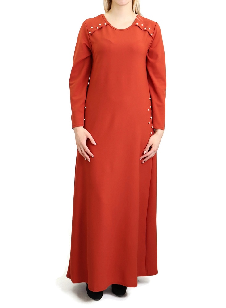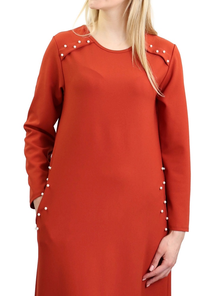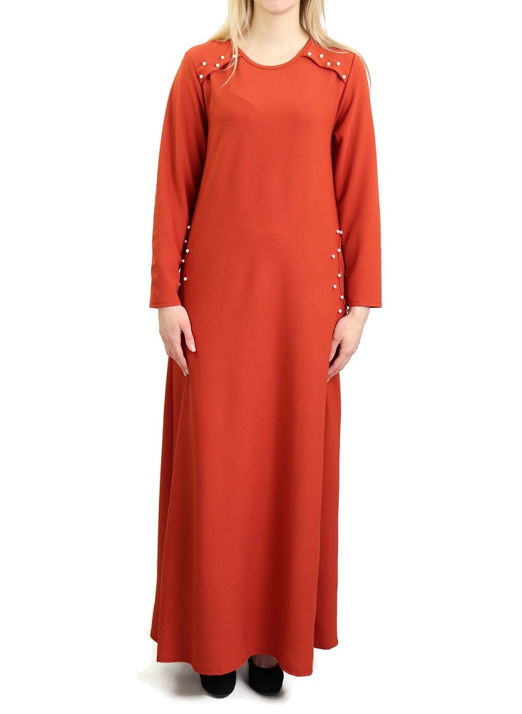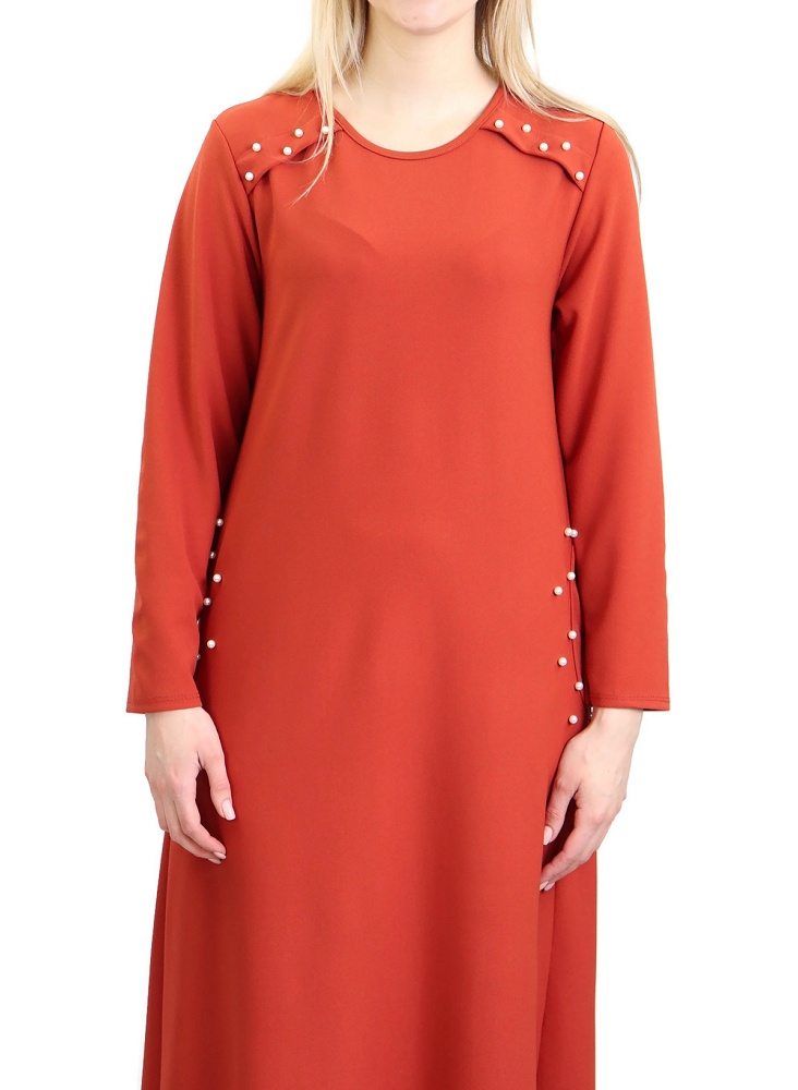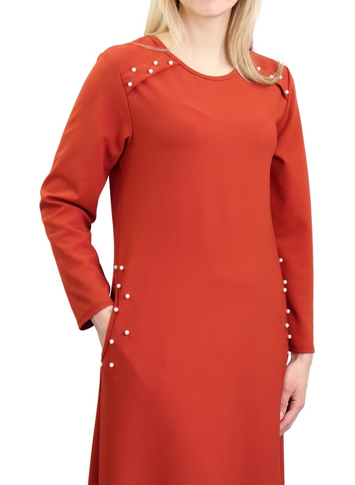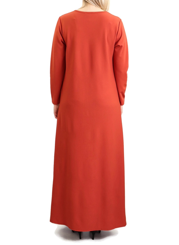 Robe casual décorée de boutons pour femme voilée (Modest Fashion France) - Couleur brique - REF. 33247 (22.00 €)