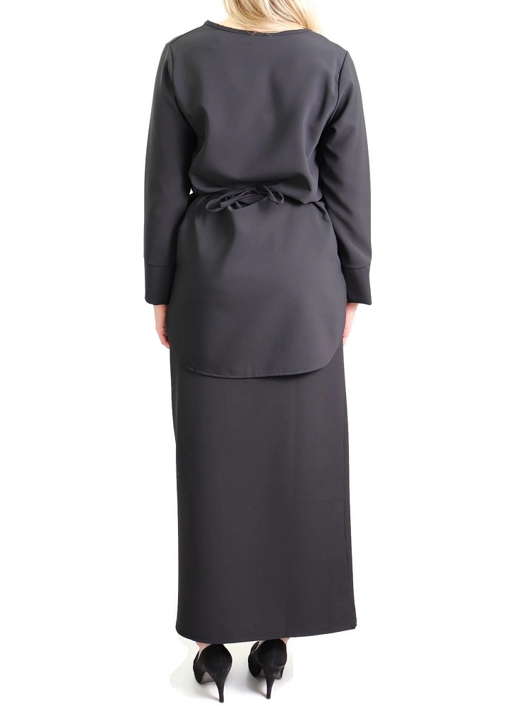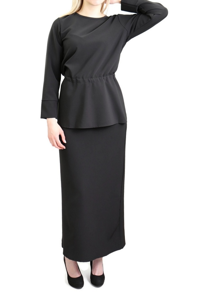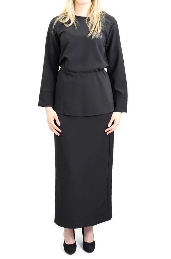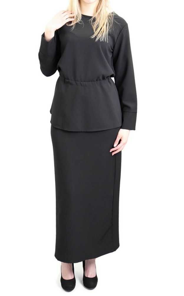 La jupe droite couvrira vos jambes jusqu'aux pieds pour plus de pudeur, alors que le haut à la taille marquée vous assurera un look distingué.
